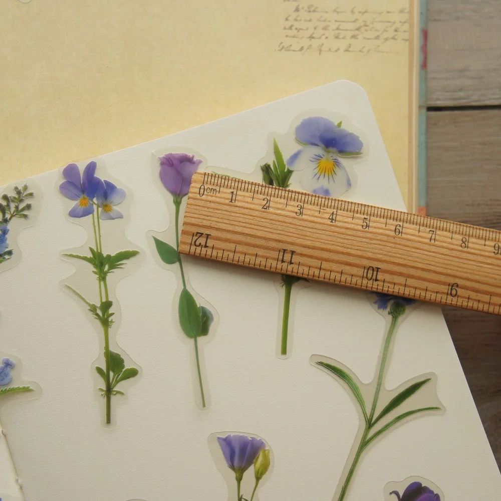 Стикеры из натуральных фиолетовых широких бобов, тюльпаны, розы, маргаритки, стикеры из ПВХ для скрапбукинга, декоративные бирки для упаковки подарков сделай сам, 36 шт.