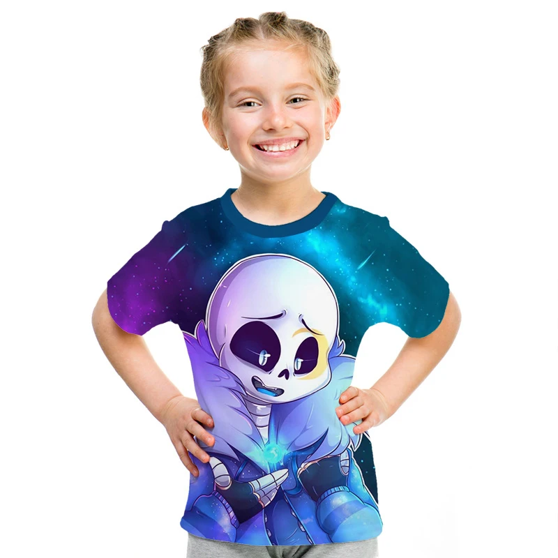 Летняя Детская футболка с 3d-играми, для мальчиков и девочек, Undertale Sans, милая футболка с рисунком аниме, детская модная футболка на день рождения, топы, женская футболка