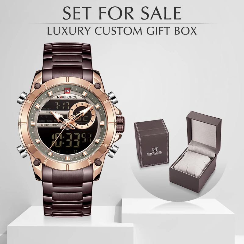 Мужские часы NAVIFORCE Топ люксовый бренд мужские спортивные военные часы полностью стальные водонепроницаемые кварцевые цифровые часы набор для продажи