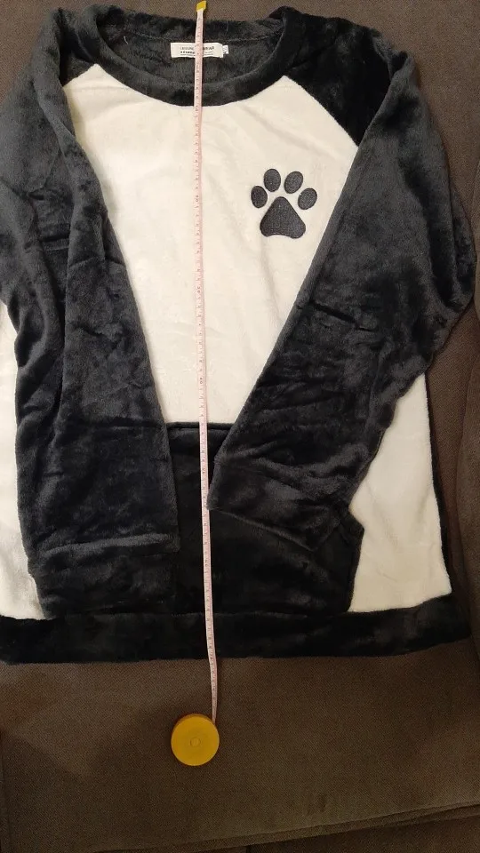 пижама нормальная, теплая, продавец в подарок положил резинку для волос, хотя я парень); на мой рост 170 и вес 70 xxl - великовата, думаю можно смело брать xl. Из недостатков : дырка в кармане и очень большое отверстие в кофте для головы, прям чуть ли не декольте.