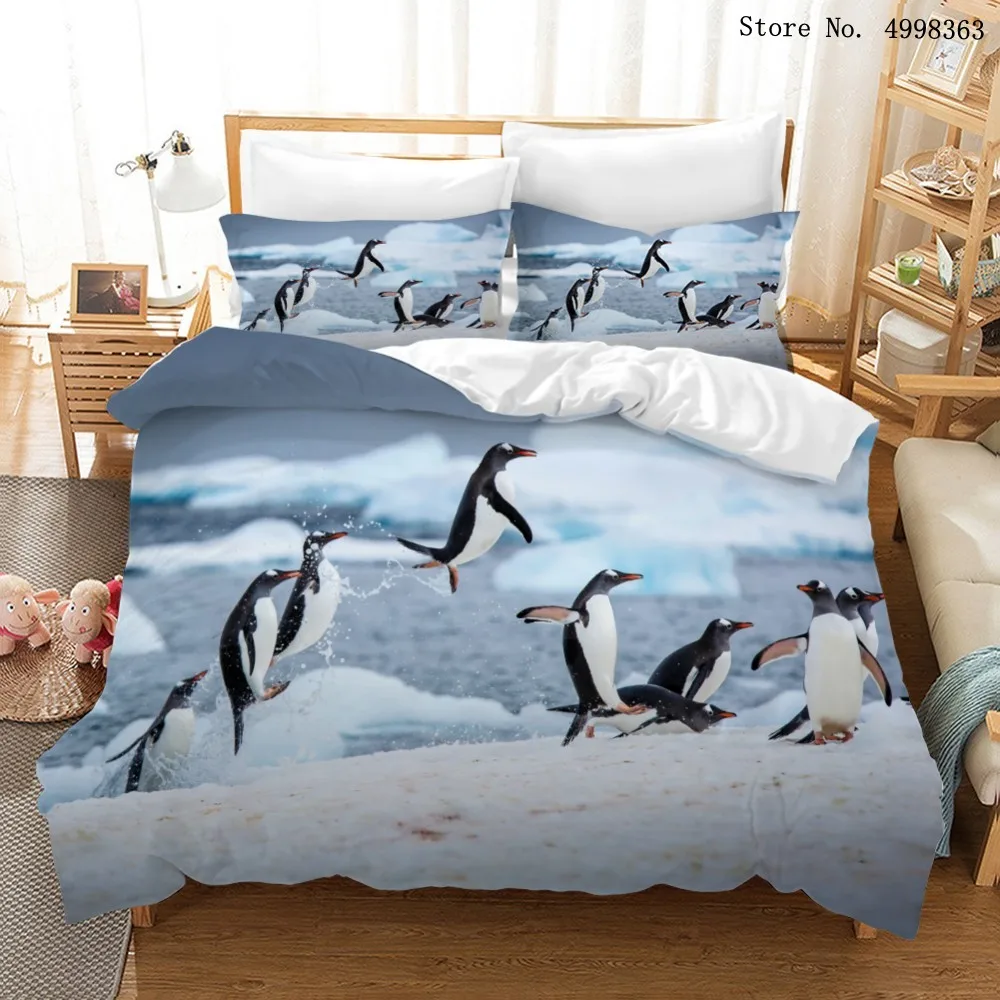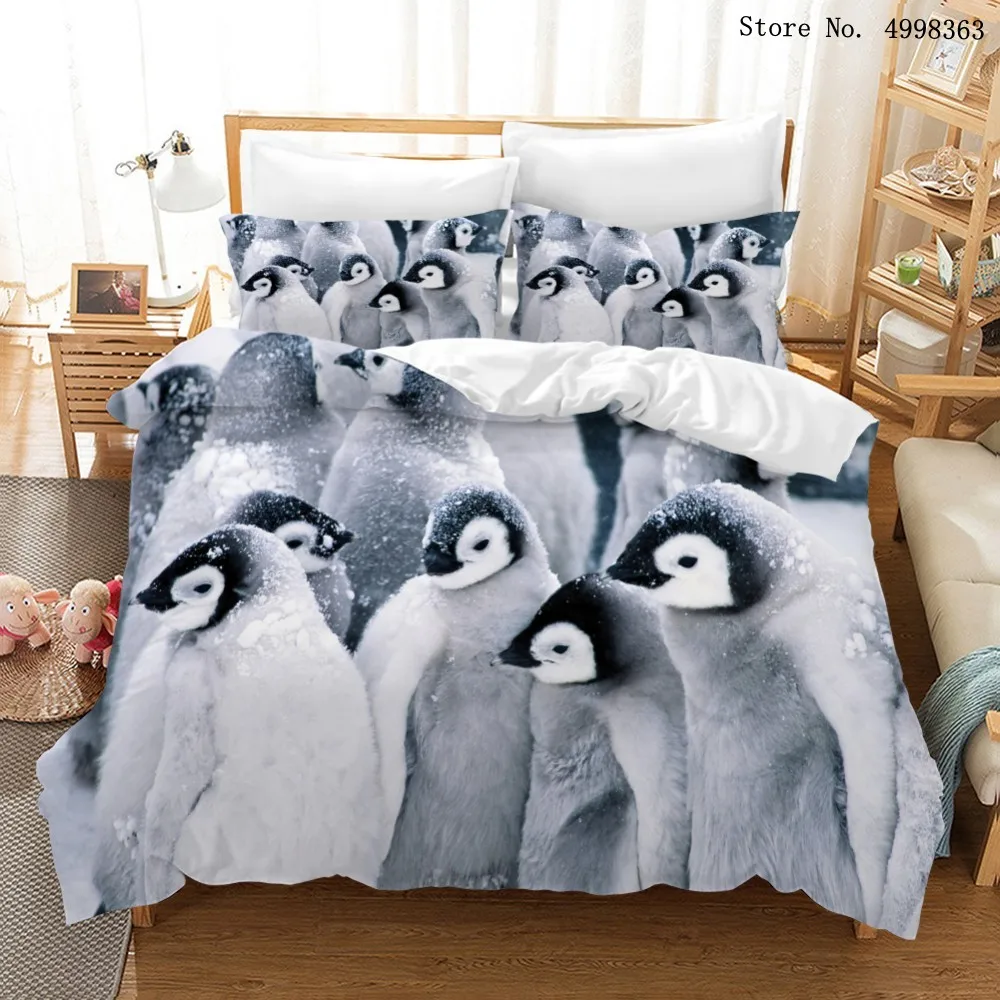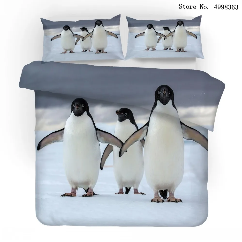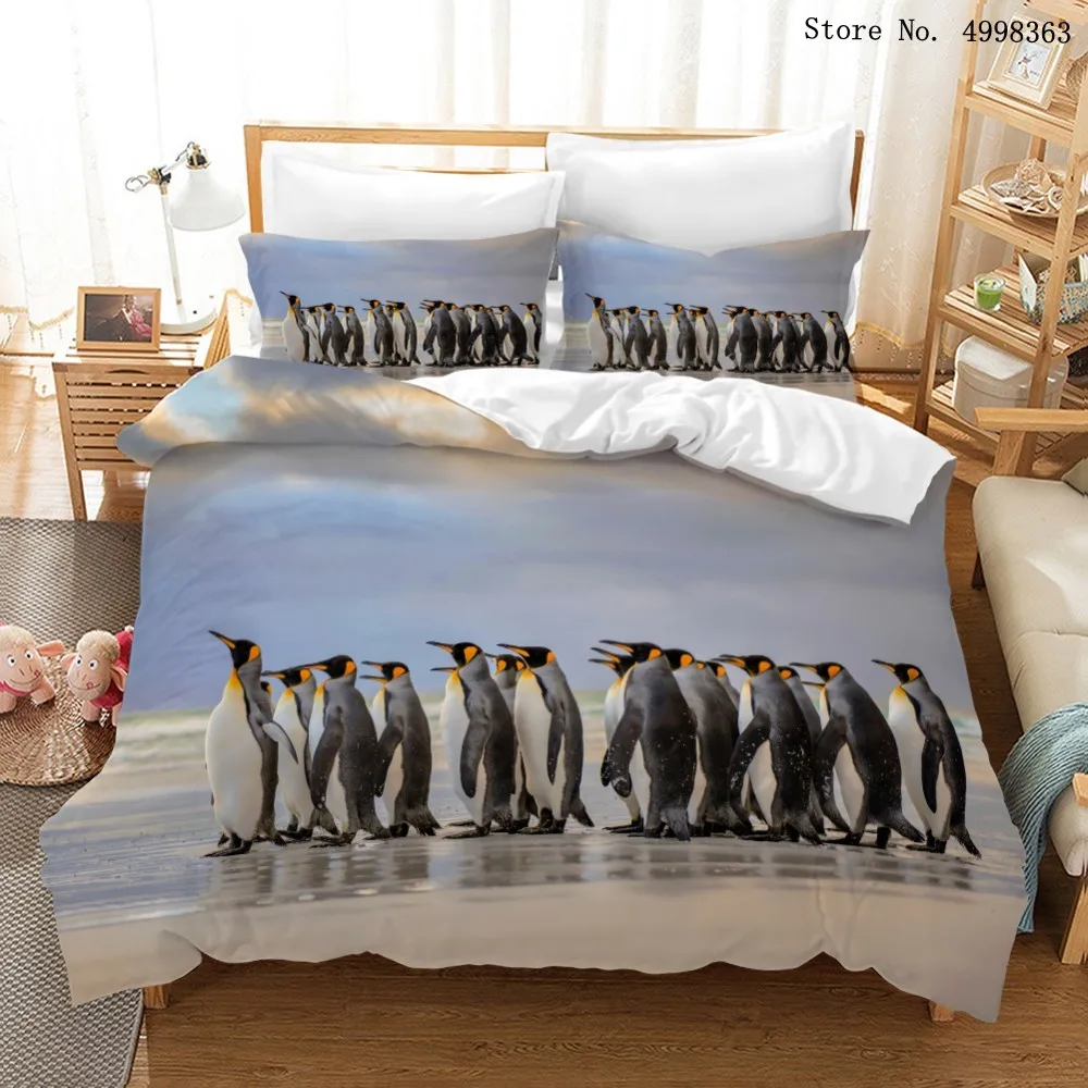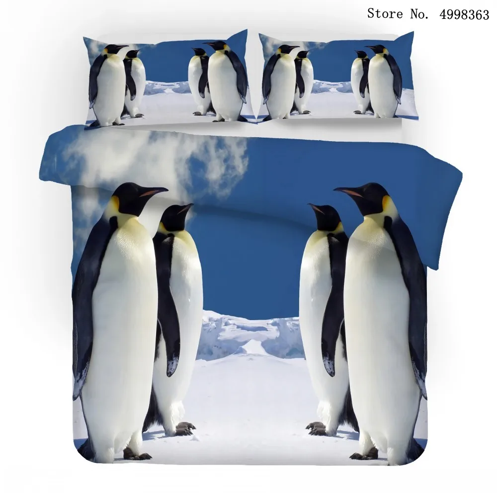 Комплект постельного белья с пингвином, мультяшный пододеяльник, одинарный двойной комплект постельного белья для королевы, королевского размера, 3D принт, постельное белье, подарочное покрывало, без простыни