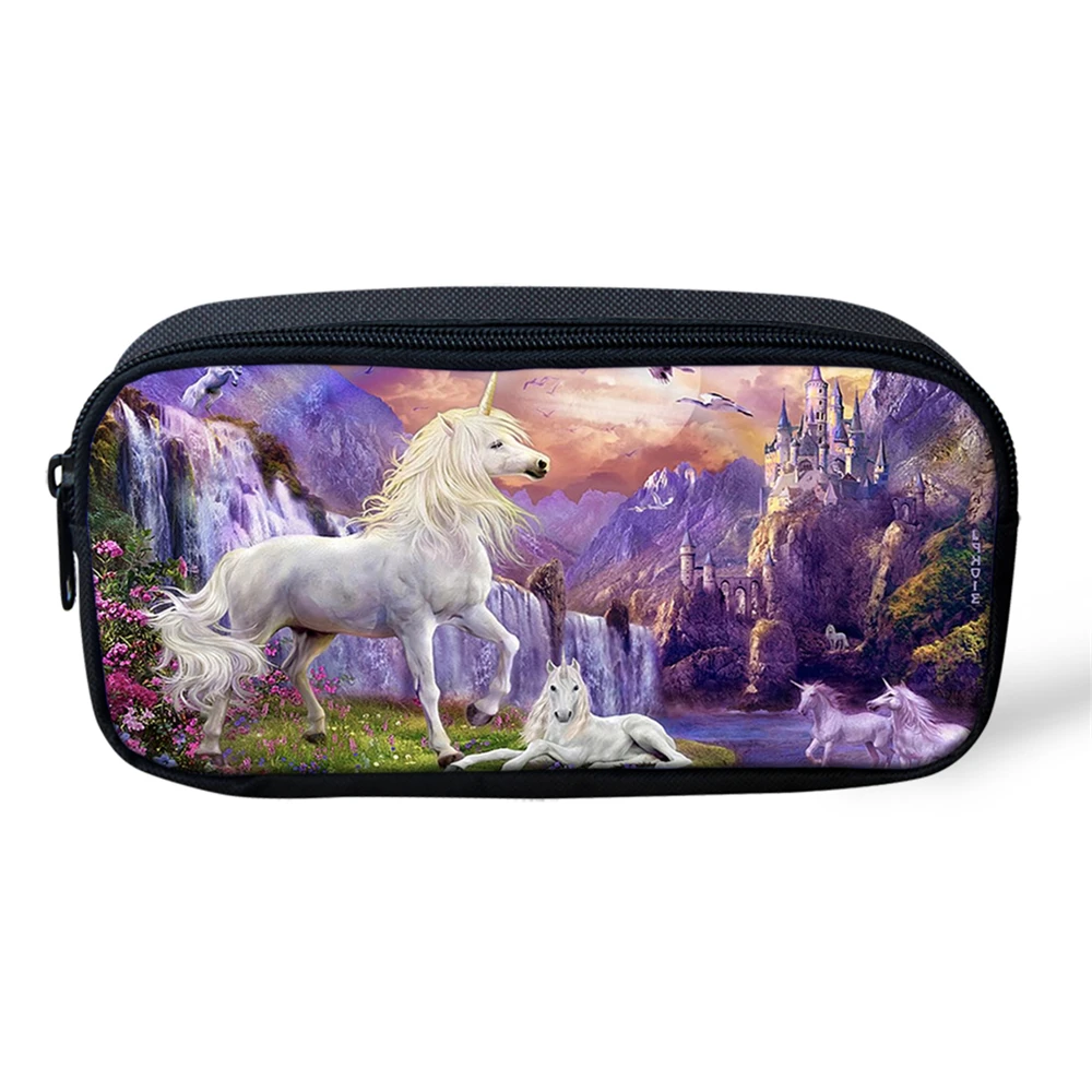 Чехол для карандашей для девочек, с изображением единорога, лошадей
