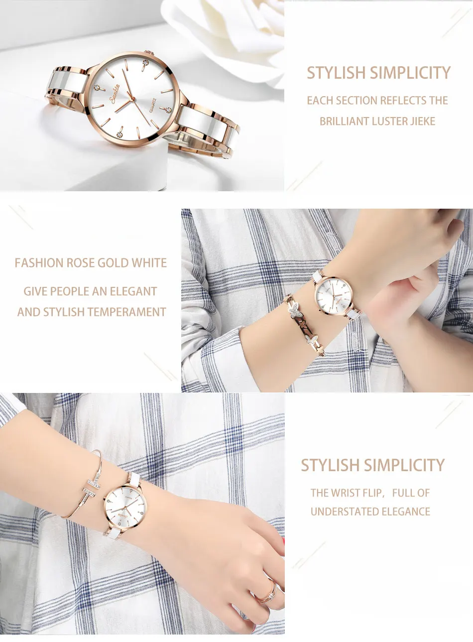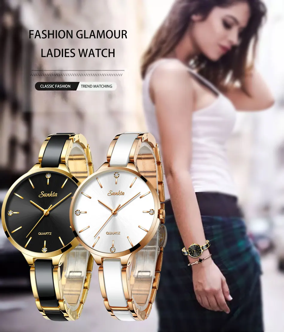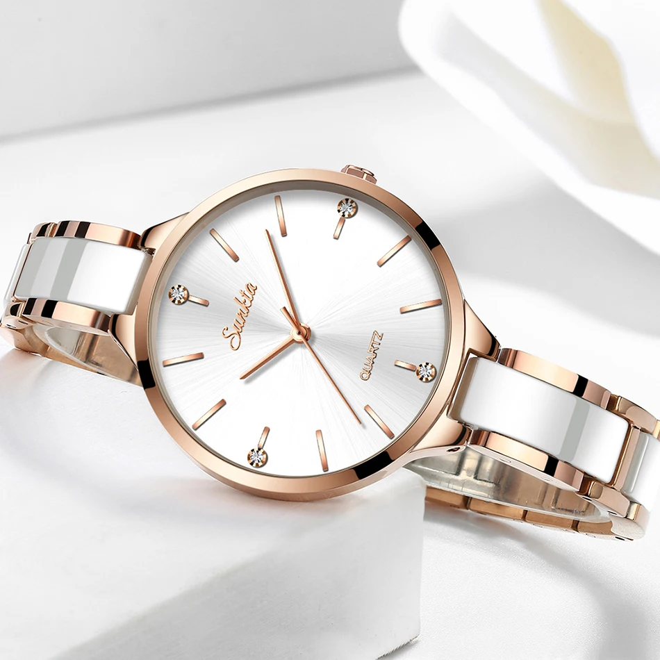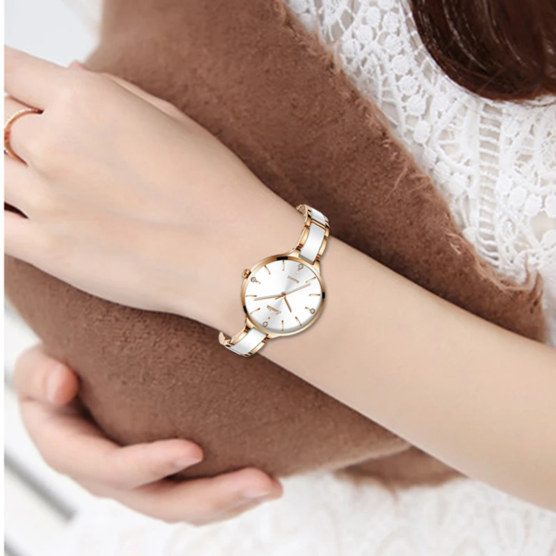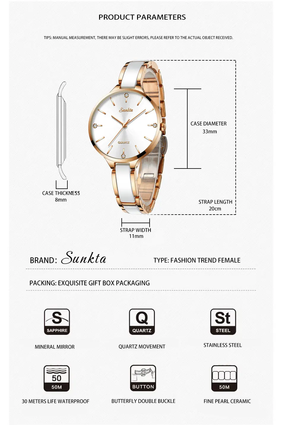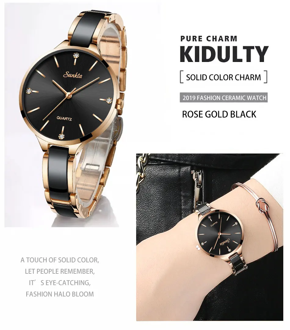 Часы наручные SUNKTA женские с керамическим ремешком, простые повсе...