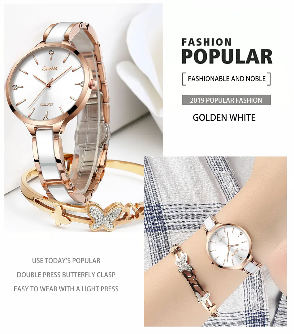 Женские кварцевые часы, Роскошные наручные часы от бренда SUNKTA, 2021