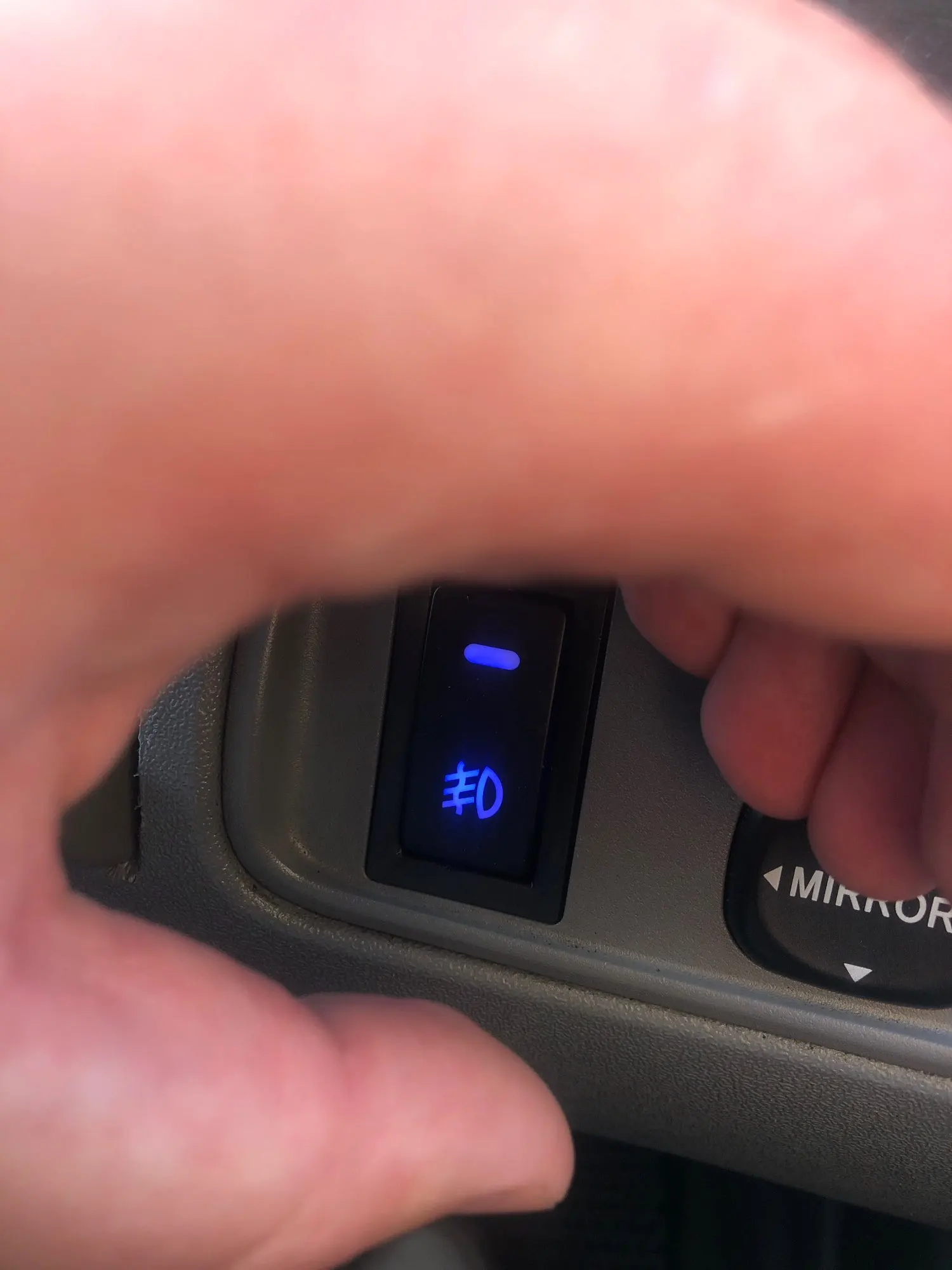 кнопка из дешёвого пластика, в гнездо садиться очень туго, ее сдавливает и она не отщелкивается обратно. Либо растачивать гнездо в панели либо выкинуть ее и купить японскую с разборки