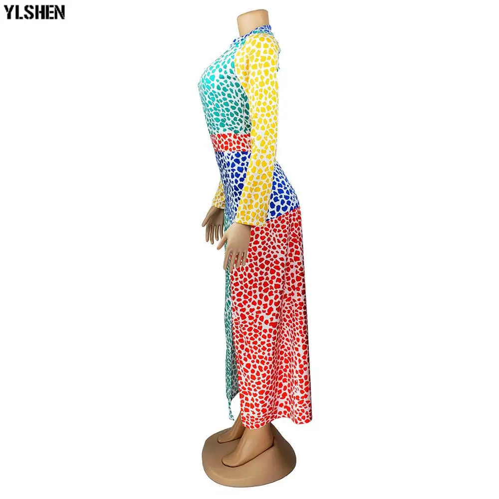Новые африканские платья для женщин, одежда для Дашики, Радужное леопардовое сексуальное платье с разрезом в Африке, одежда с длинным рукавом, Robe Africaine