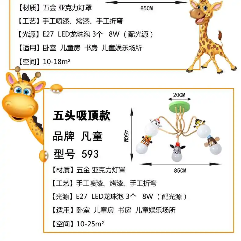 Новинка светодиодная белая лампа потолочный светильник s мультфильм животных Обезьяна зебра жираф детская спальня лампы подвесной светильник