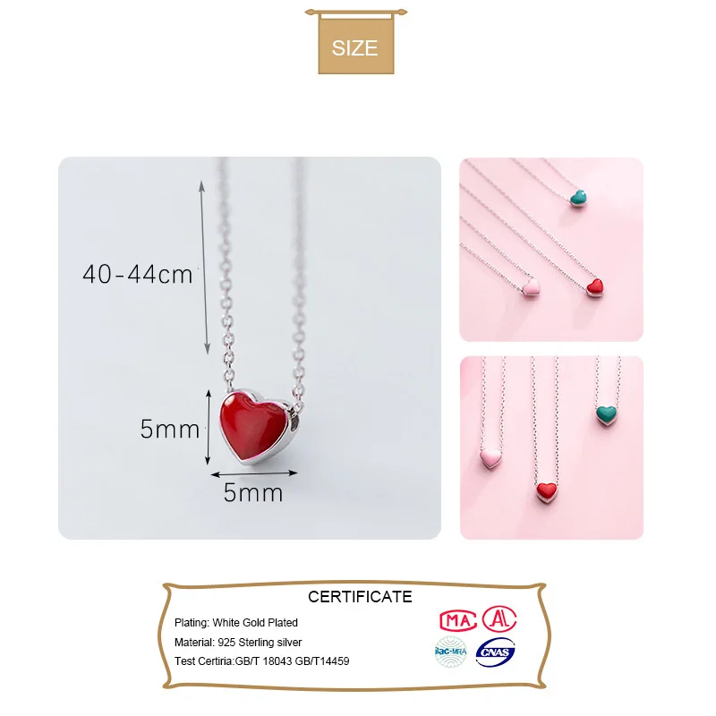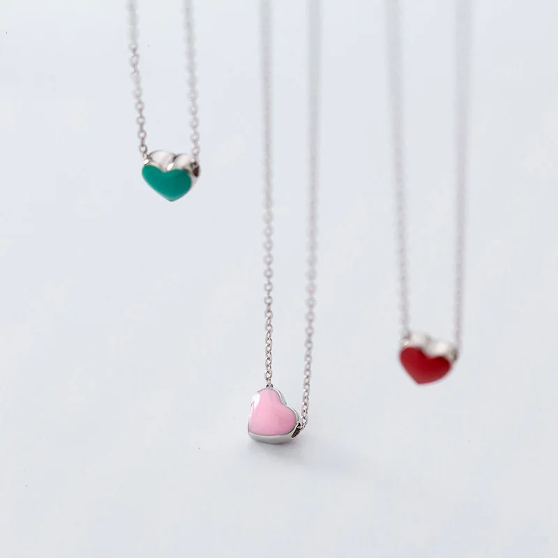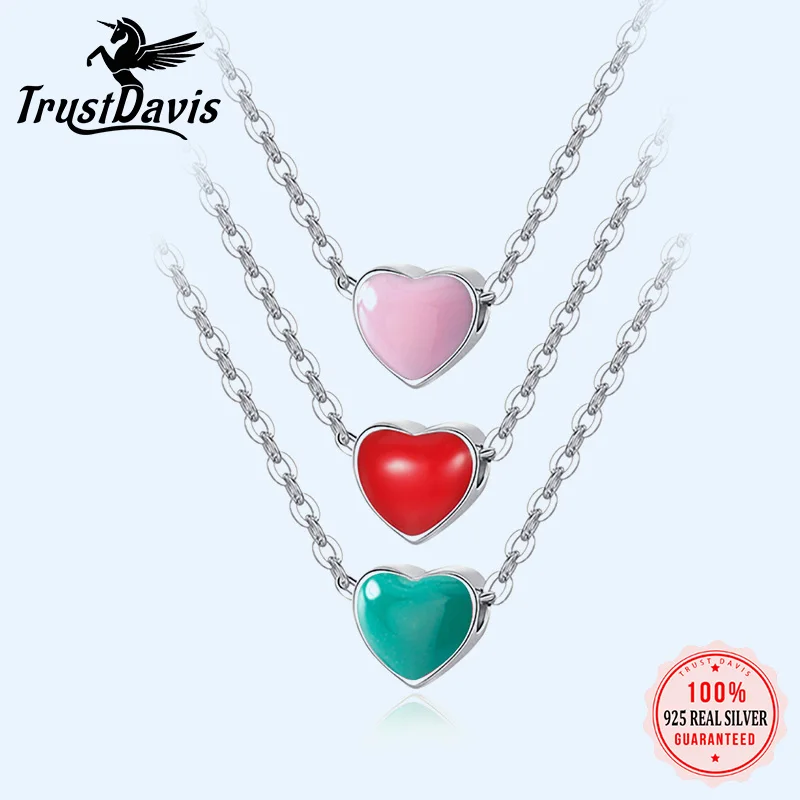 Trusta Настоящее серебро 925 пробы минималистский сладкий цвет сердце короткое ожерелье с подвеской для женщин Свадебные ювелирные изделия подарок DS2105