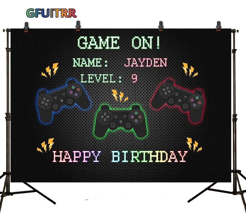 Игровая станция GFUITRR, контроллер, фотография, фон для дня рождения, черный игровой уровень, виниловая фотобудка, реквизит