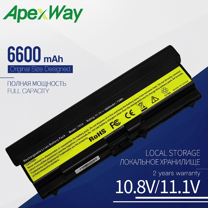 Аккумулятор Apexway для ноутбука Lenovo ThinkPad W520 L400 L410 L420 L500 L510 L520 SL400 SL410 SL500 SL510 T410 T420 9 ячеек, 6600 мАч