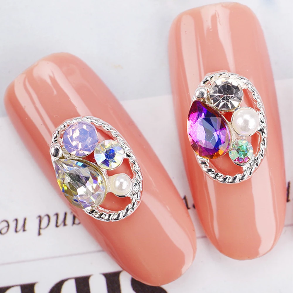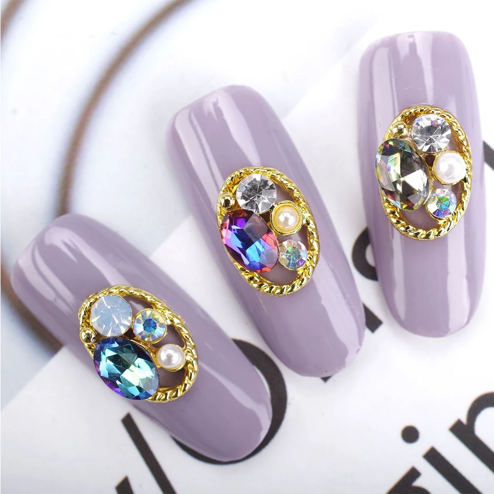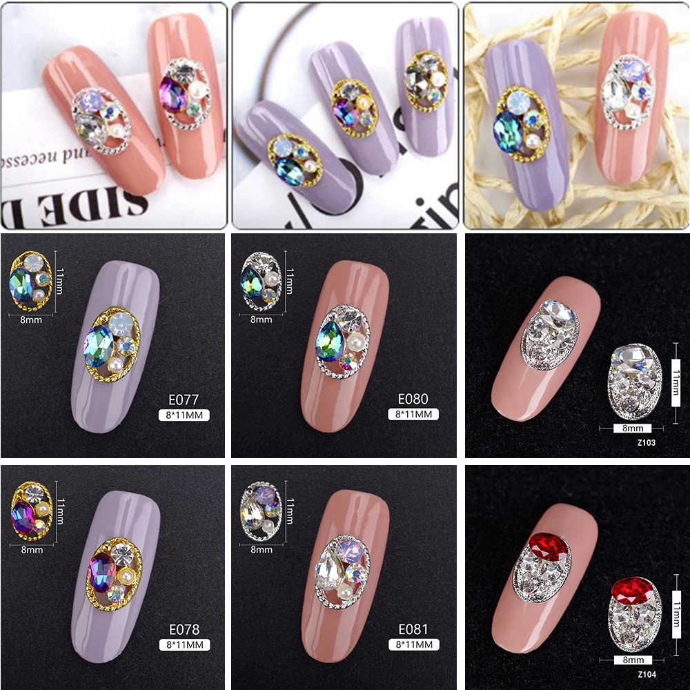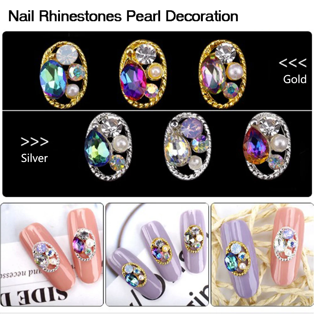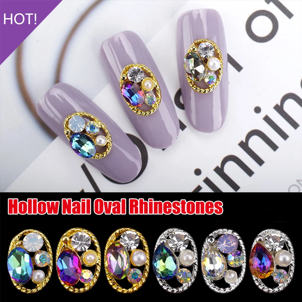 Пустотелые овальные Стразы, украшения для ногтей, жемчужные подвески, красивые блестящие подвески для ногтей, металлические аксессуары для украшения ногтей 3D