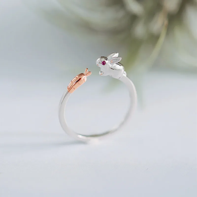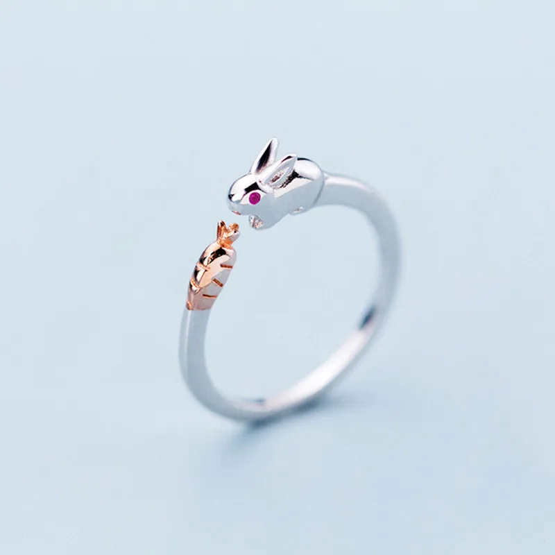 Модное Ювелирное кольцо, открытые кольца с милым кроликом и морковкой для женщин и детей, Женское кольцо на палец, бижутерия с животными