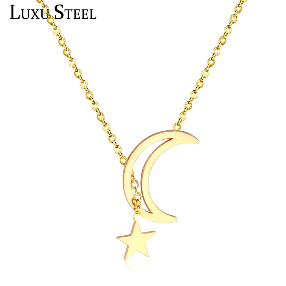 Ожерелье женское из нержавеющей стали, подвеска Звезда Луна