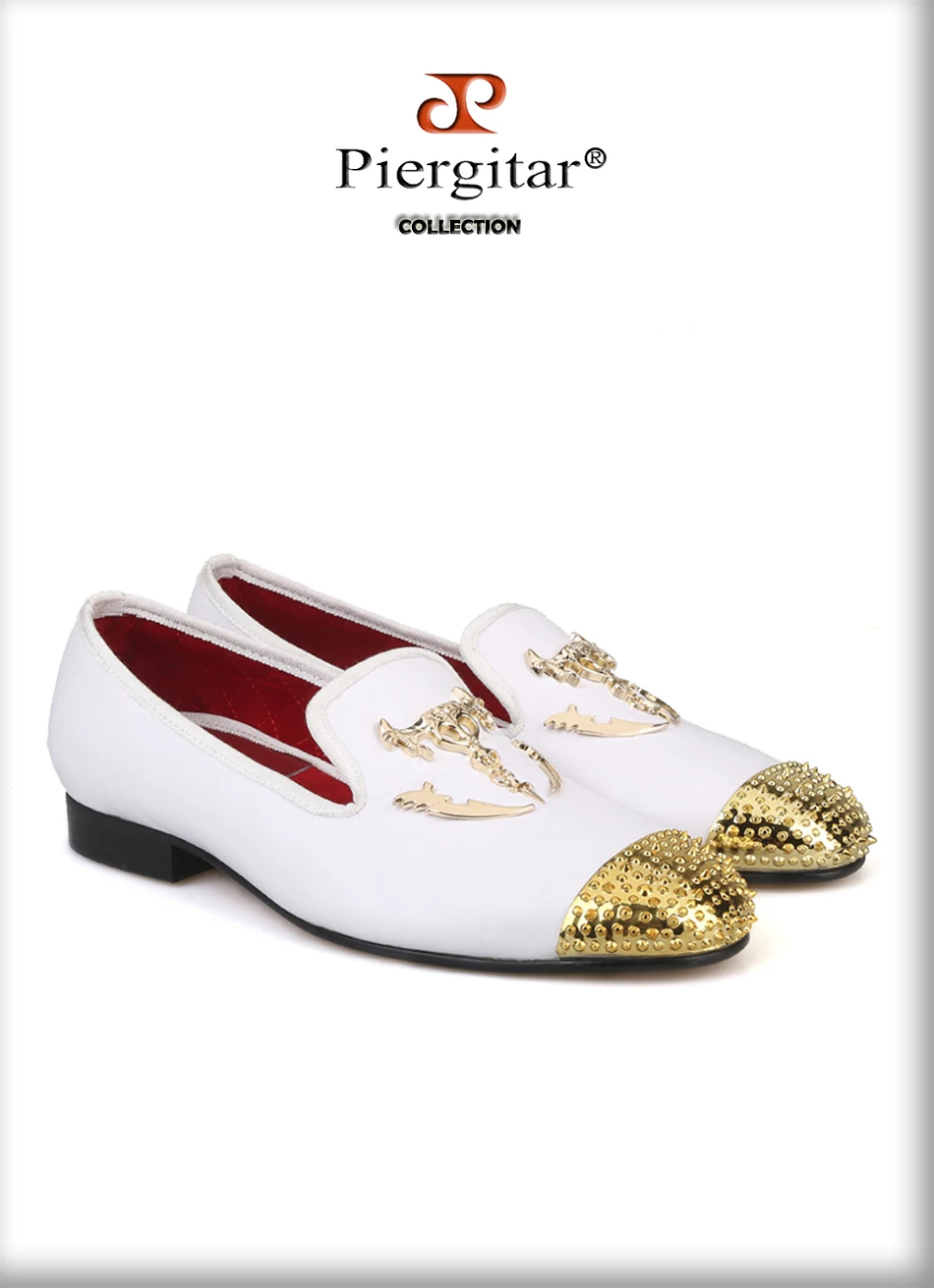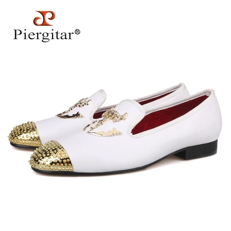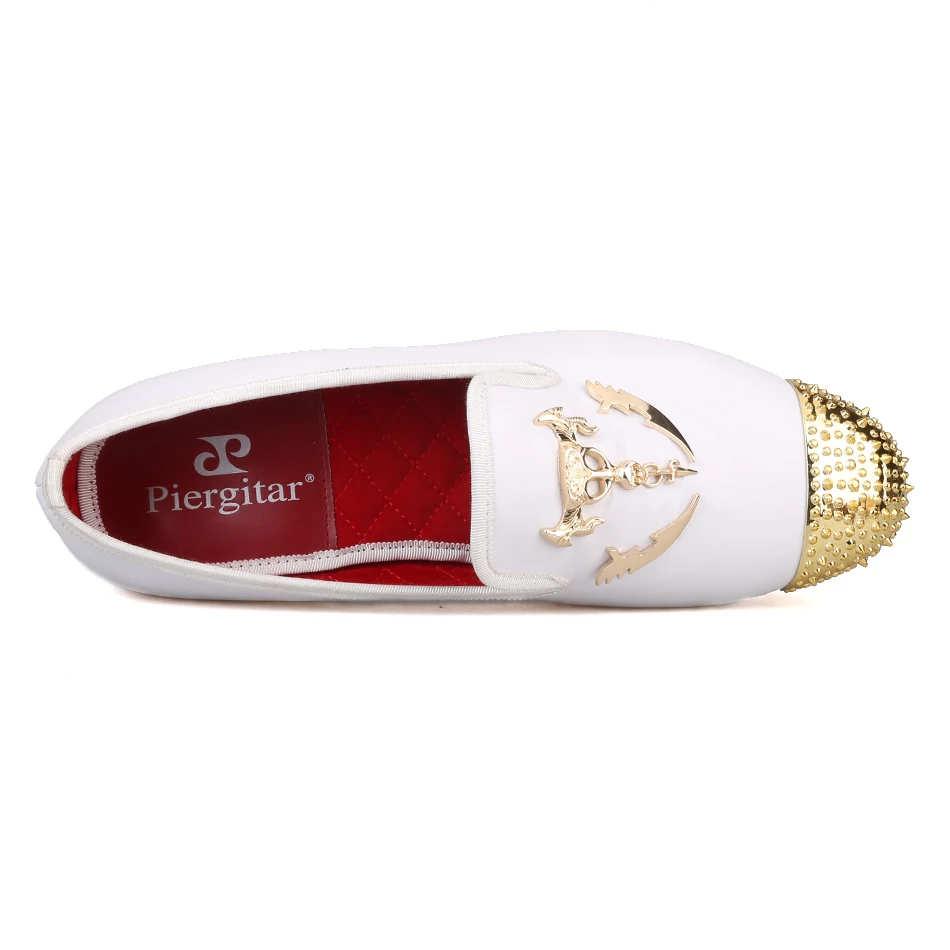 Мужские кожаные туфли Piergitar, белые вечерние лоферы с золотым носком и металлическим украшением, парадные туфли размера плюс, для свадьбы, 2019