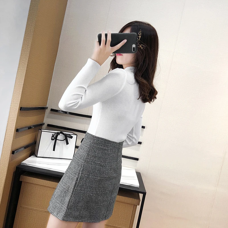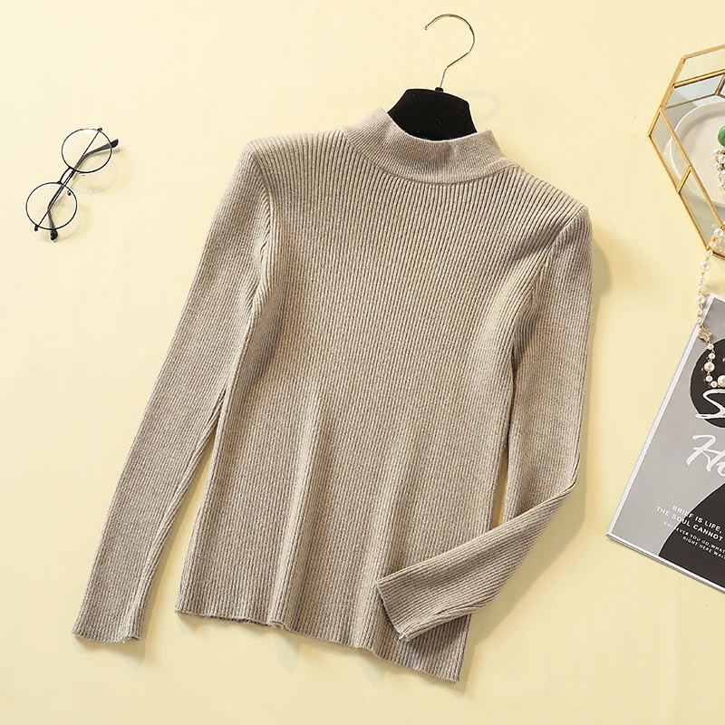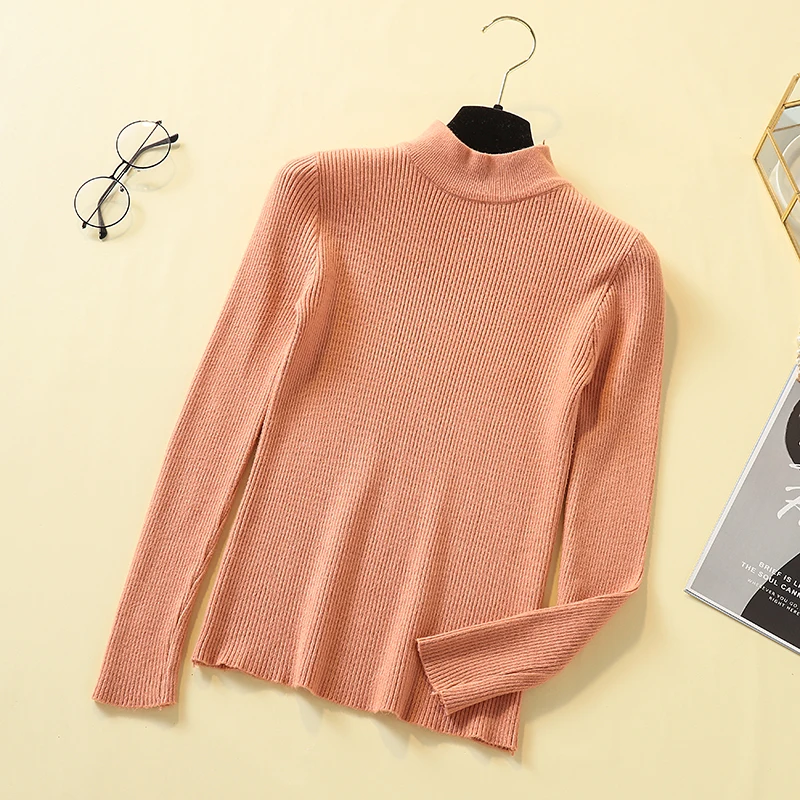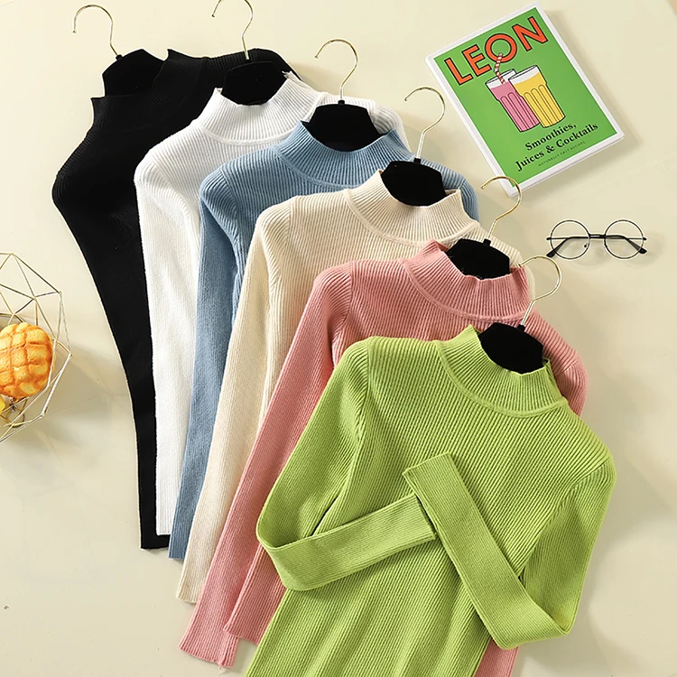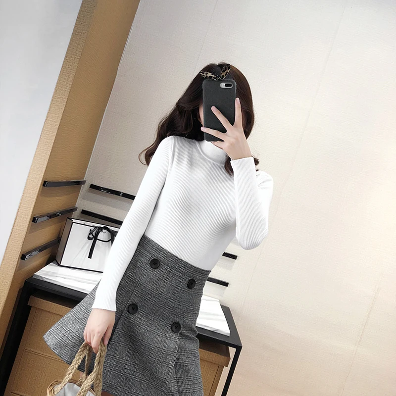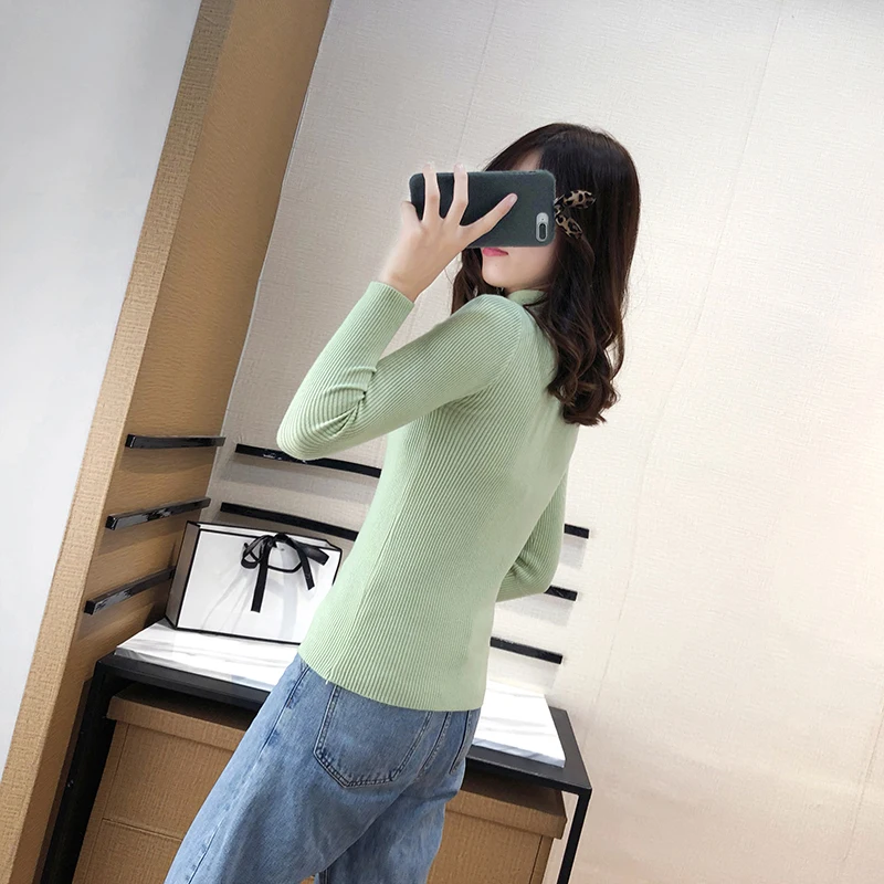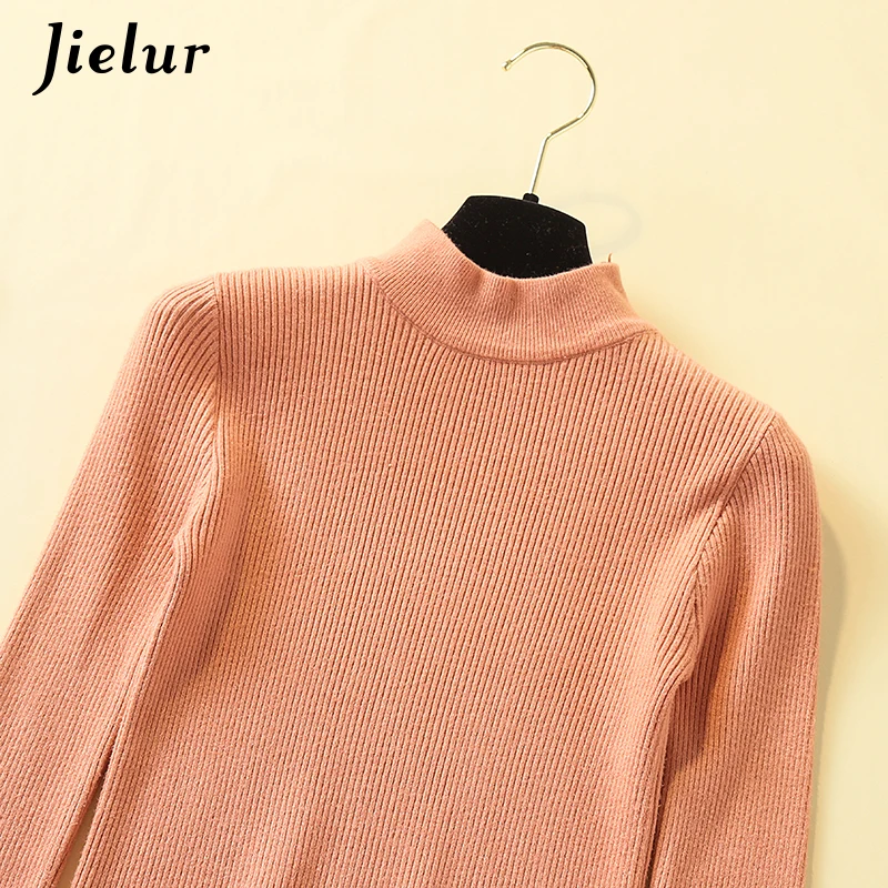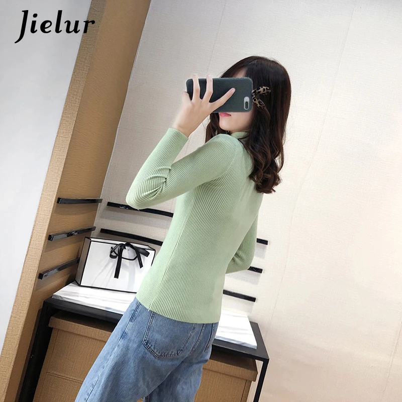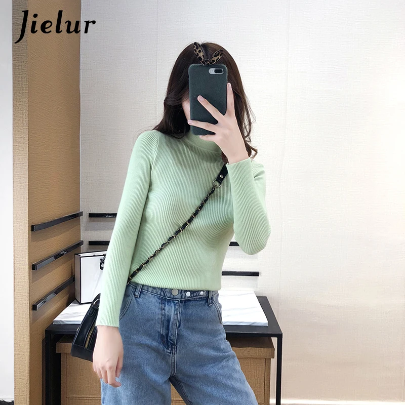 Женский вязаный свитер Jielur однотонный тонкий пуловер с длинным рукавом водолазка 12 цветов Осень-зима 2020