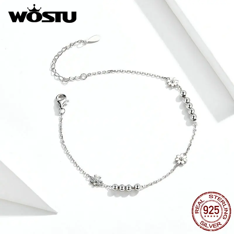 Браслет-цепочка с цветами bamoer Daisy, браслеты из натурального се...