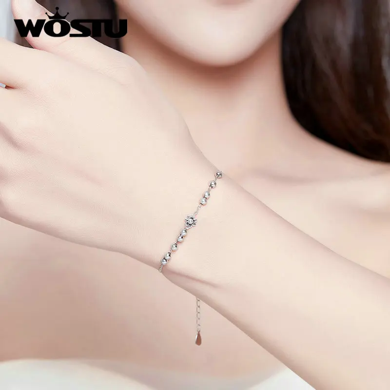 WOSTU 100% Серебро 925 пробы Регулируемый простой браслет 17 -19 см...