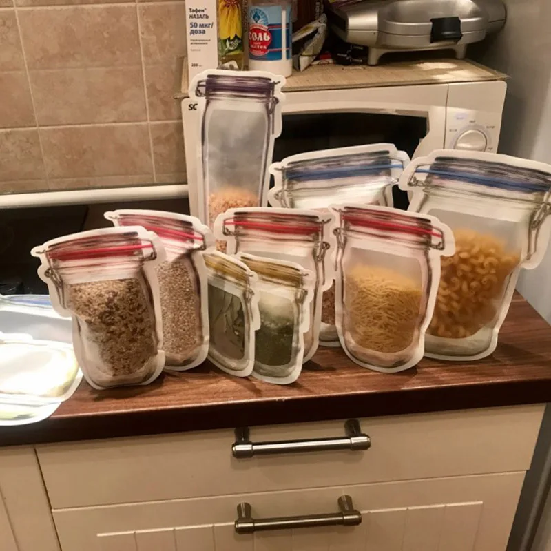 Креативная банка, бутылочки, пакеты, пакеты для хранения орехов, специй, чая, печенья, шоколадных пакетов, запаянный Органайзер на молнии для свежей еды, закусок