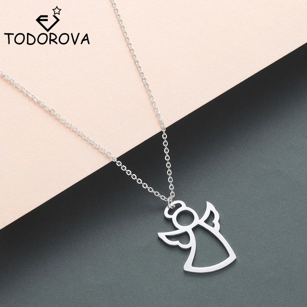Женское Ожерелье с ангелом Todorova, минималистичное ожерелье из нержавеющей стали, ожерелье с маленькой подвеской Фея Ангел с крыльями, ювелирные изделия, бижутерия