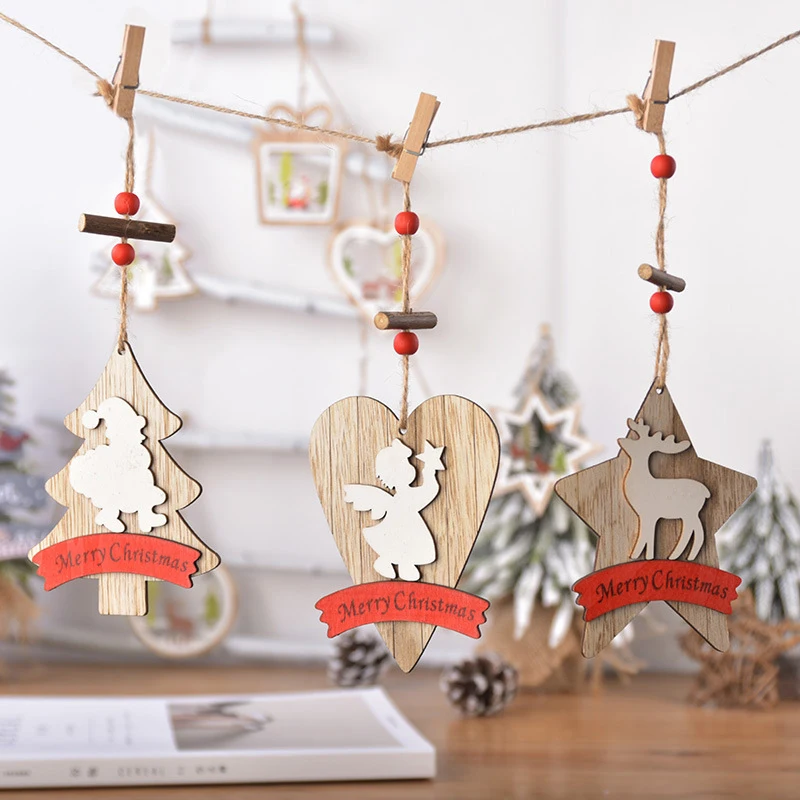 Деревянные Подвески для украшения новогодней елки, подвесные украше...