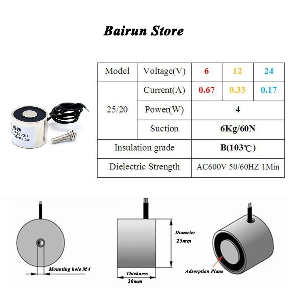 2520 мм всасывание 5 кг 50N DC 5 В12 В24 В мини-Электромагнит Электрический подъемник Электрический магнит сильный держатель чашки DIY 12 В