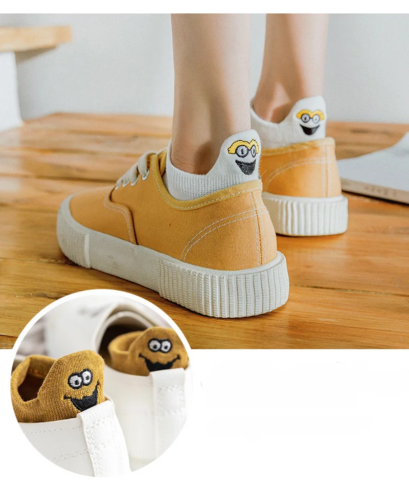 VDOGRIR Kawaii женские мягкие хлопковые носки с вышивкой, Женские Смешные носки, однотонные женские короткие носки, оптовая продажа