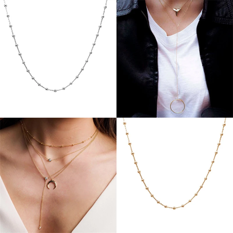 Пробы цепочка с серебряными бусинами колье ожерелья для женщин и девочек с цирконием, ювелирное изделие, ожерелье с кулоном колье Collare, Collane колье кеттинг