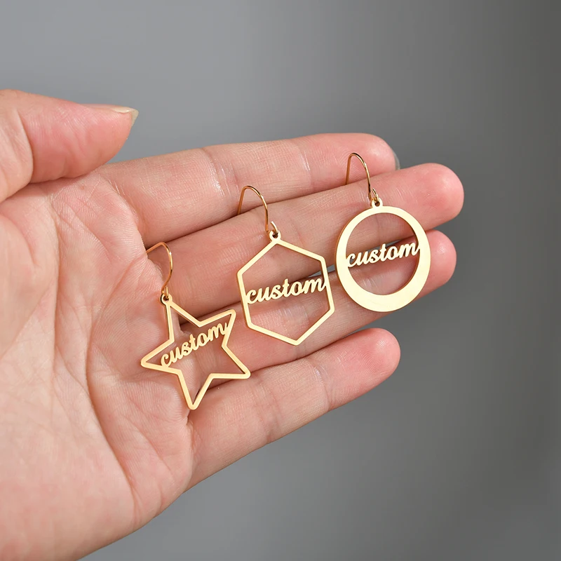 Уникальные серьги со звездами, круглые висячие серьги с именем для женщин и девушек, подарки для вечеринок