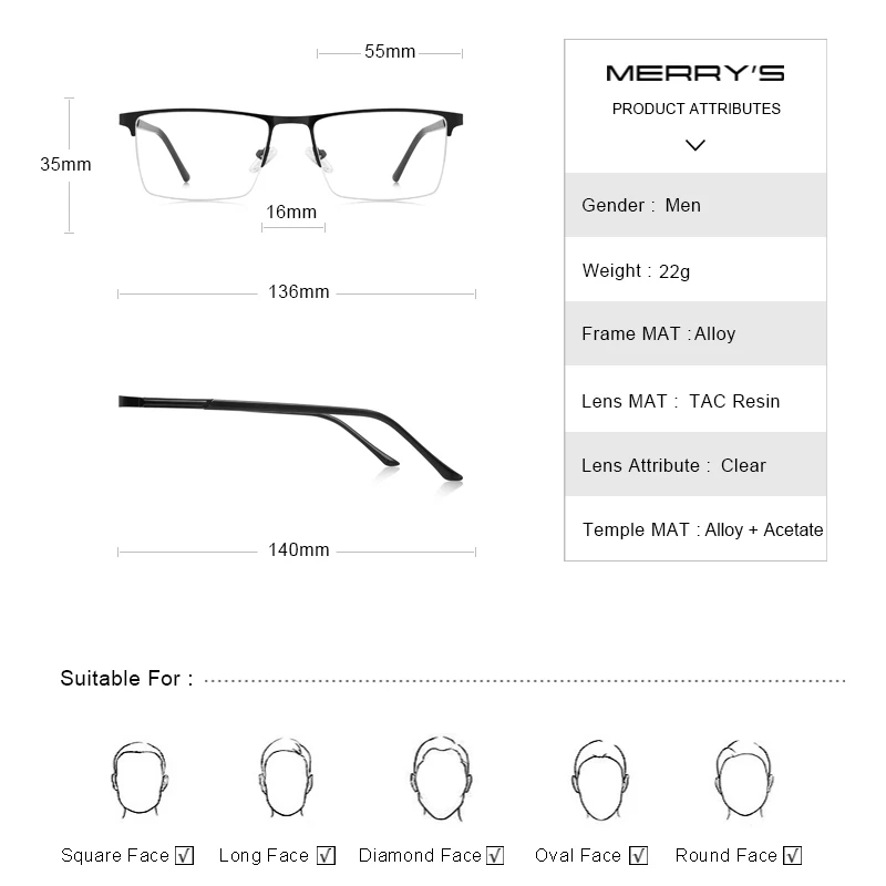 Мужские классические осветительные очки MERRY'S в деловом стиле 202...