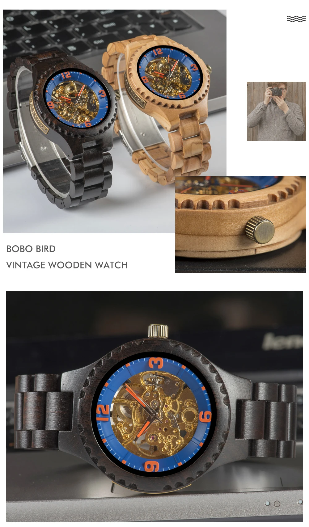 Мужские автоматические механические часы BOBO BIRD, деревянные водонепроницаемые мужские часы, модный роскошный дизайн, принимаются индивидуальные отличные подарочные коробки