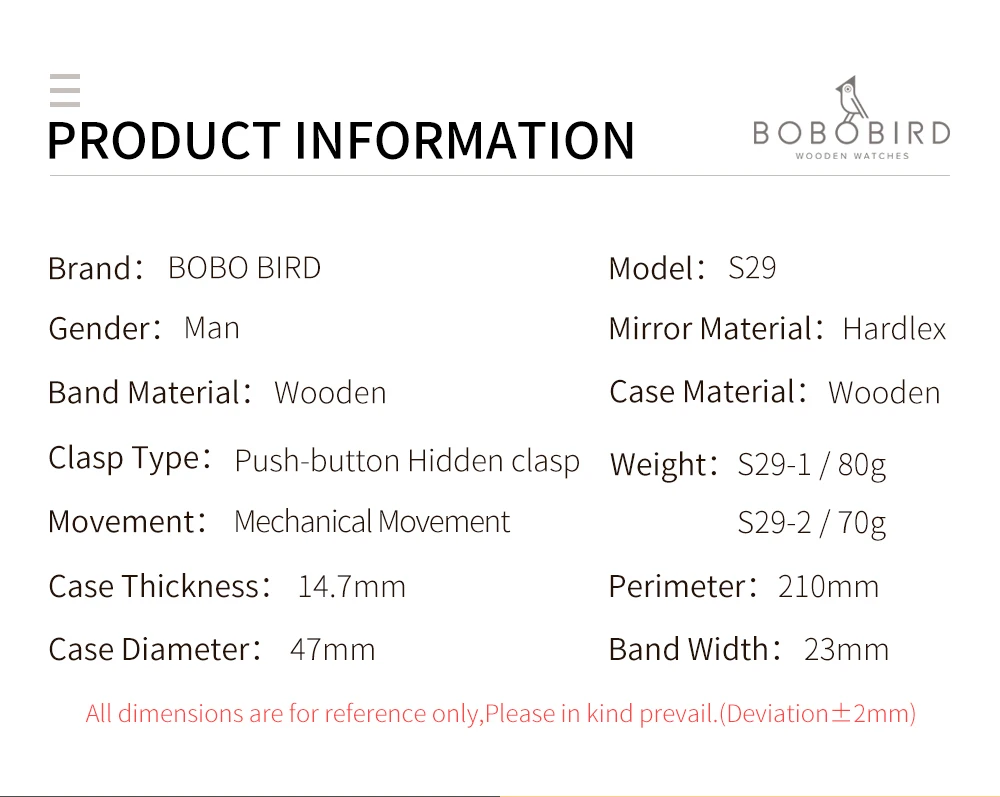 1. Вы получите часы, одну бамбуковую коробку.2. Один год гарантии.3. Чехол для часов сбоку, задняя крышка, коробка, принимается по индивидуальному заказу.4. Время производства оригинальных часов: 1-3 рабочих дня, Время изготовления часов по индивидуальному заказу: 2-4 рабочих дня.