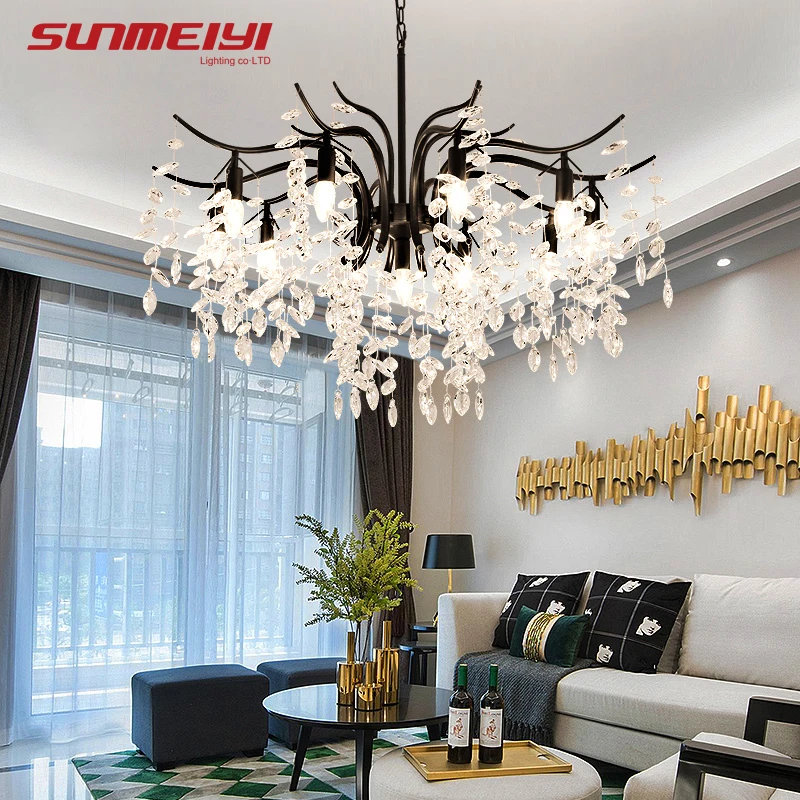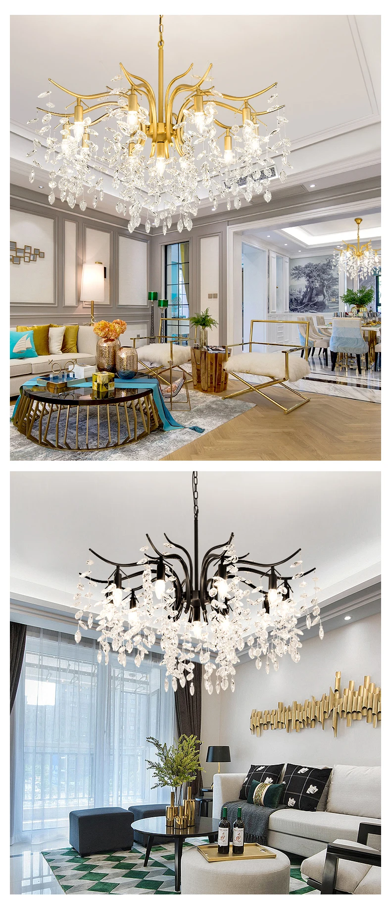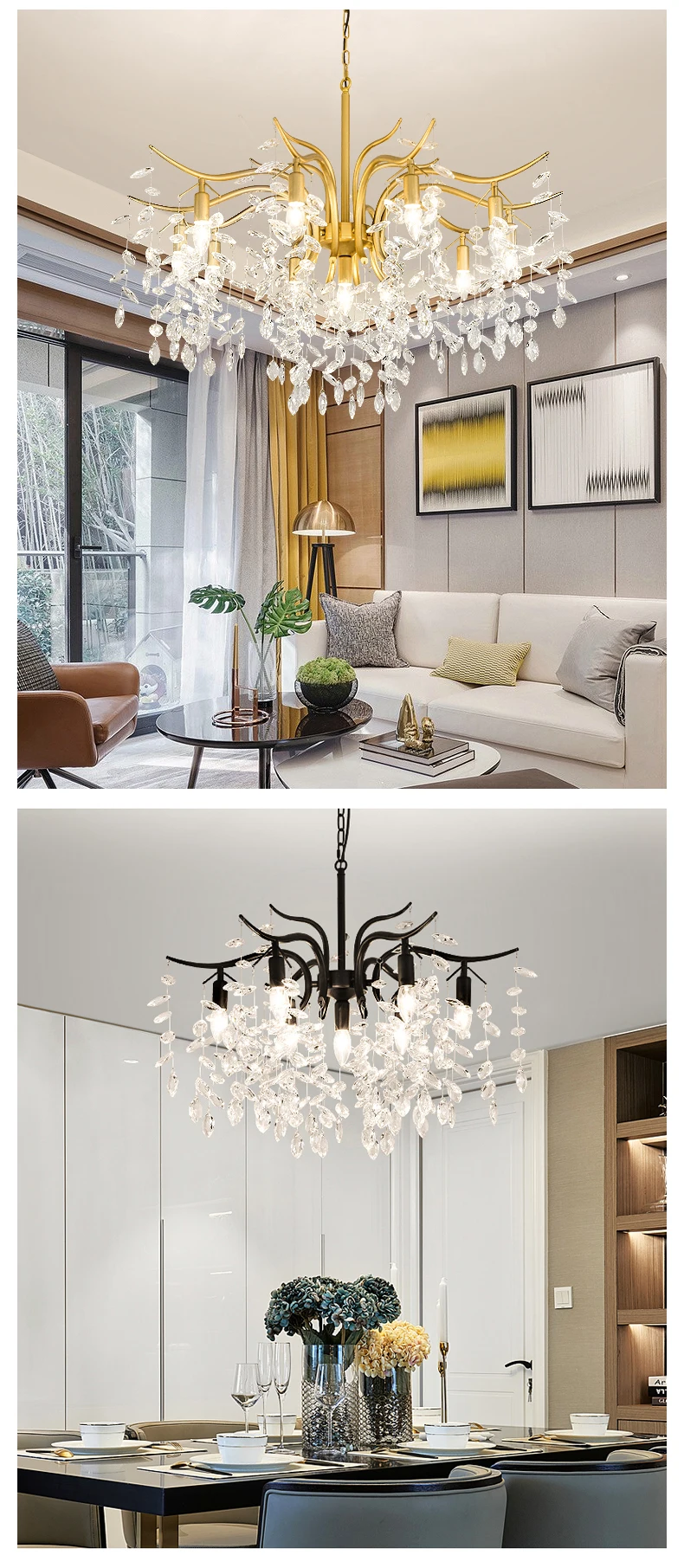 Светодиодные хрустальные люстры в скандинавском стиле, золотистая, черная люстра, роскошное освещение для кухни, столовой, гостиной, спальни, лампа, люстра