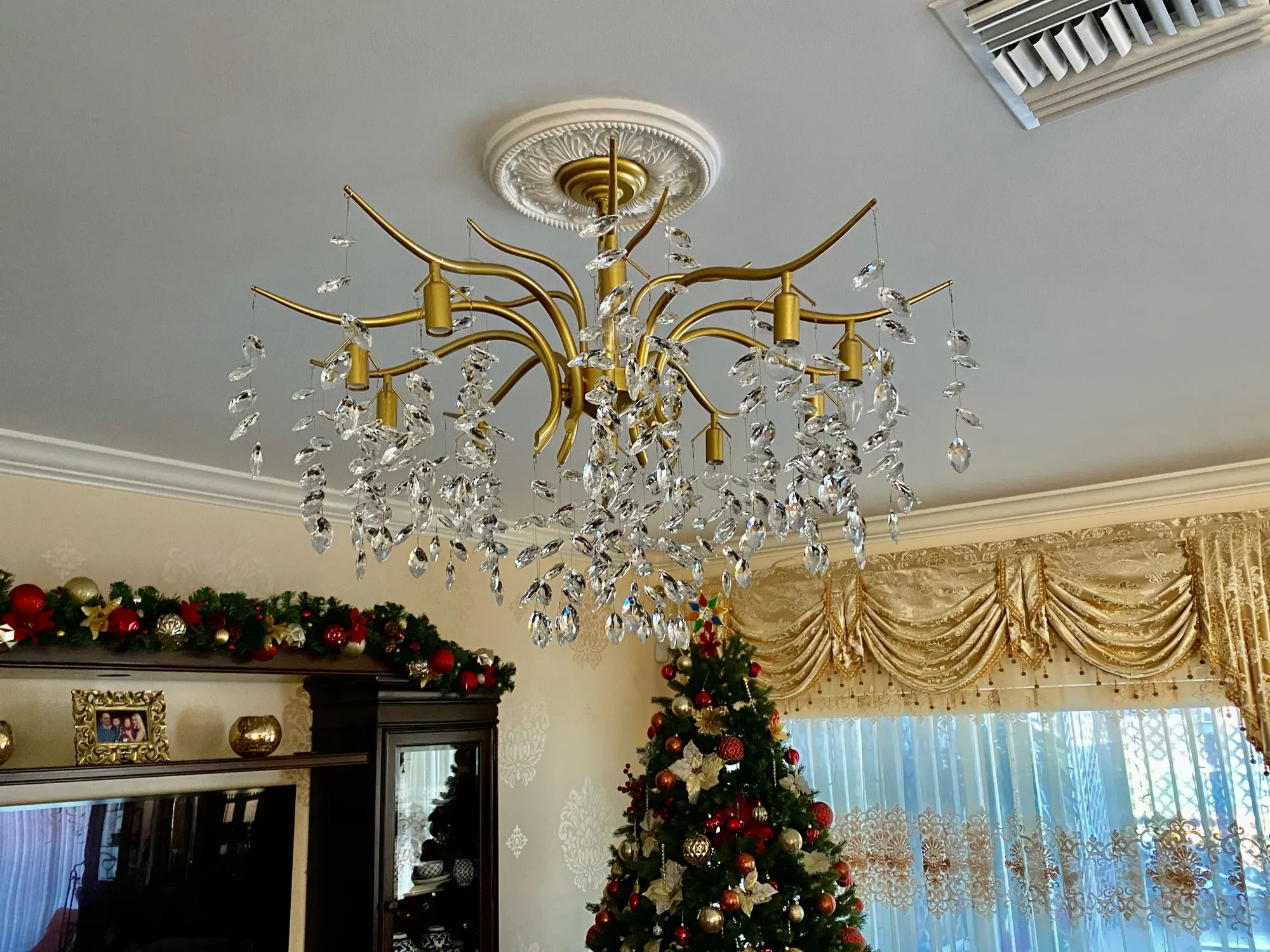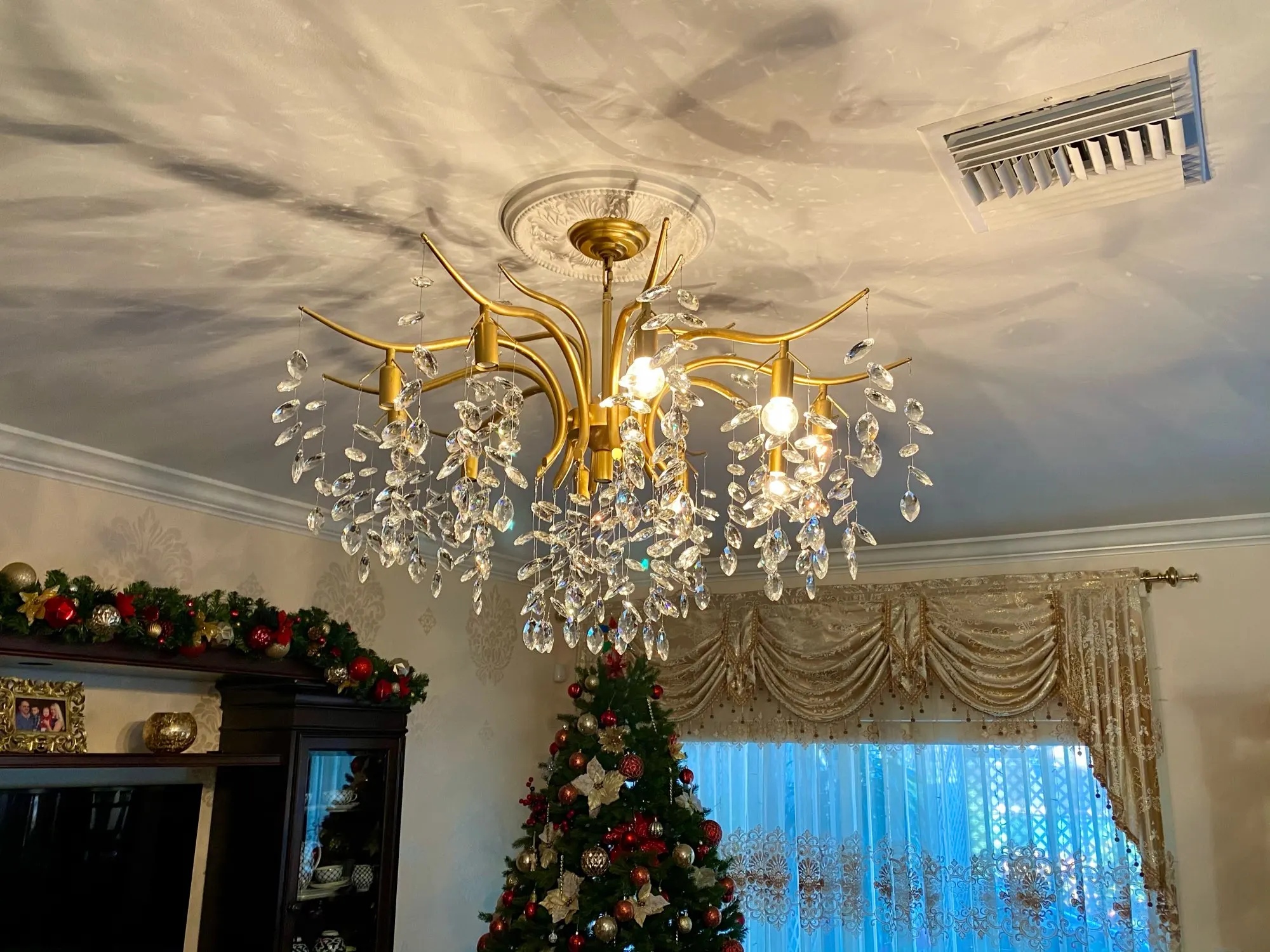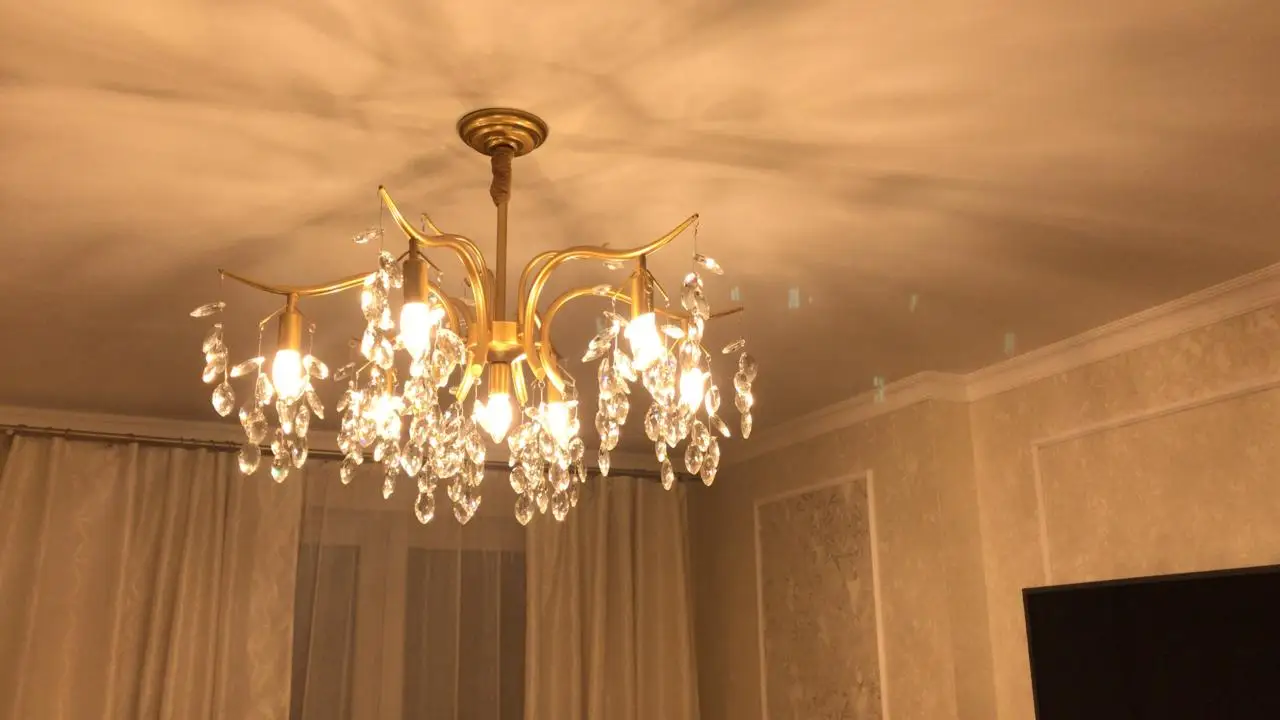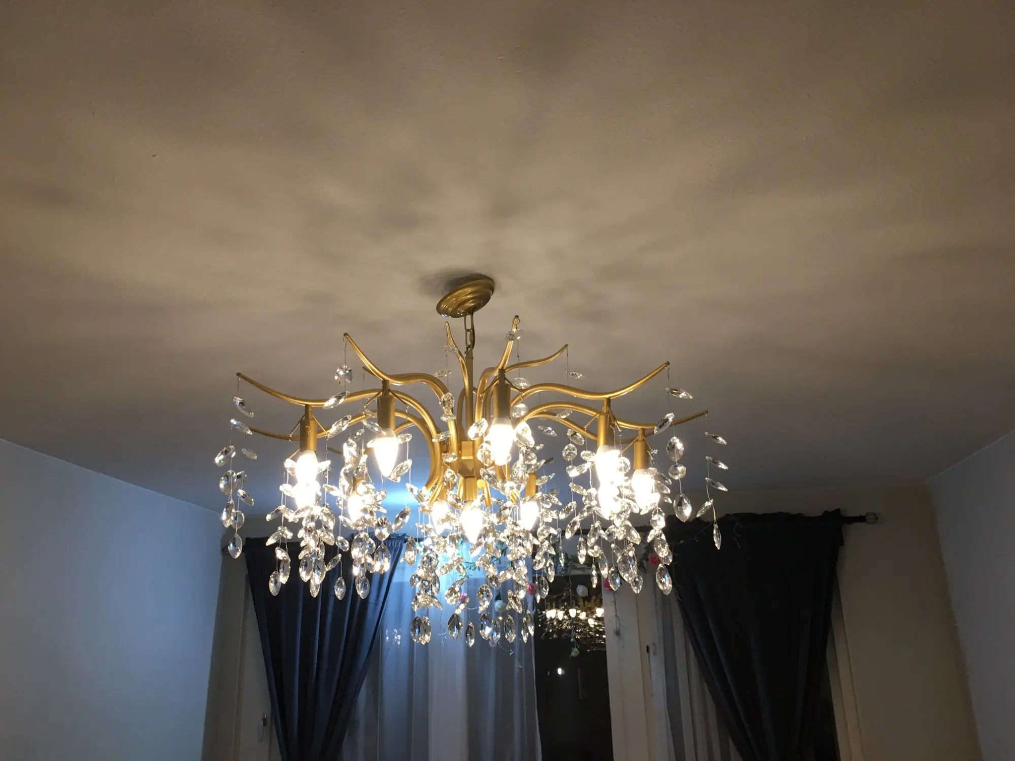 Классная люстра!!! Соответствует описанию и фото, важно! регулируется под высоту потолка. Люстра тщательно упакована, доставили в целости и сохранности в 2 раза быстрее заявленного срока, хотя срок закладывают хороший, но продавец помогает точнее контролировать местонахождения посылки в пути.