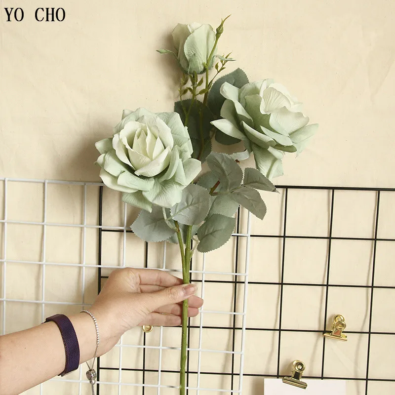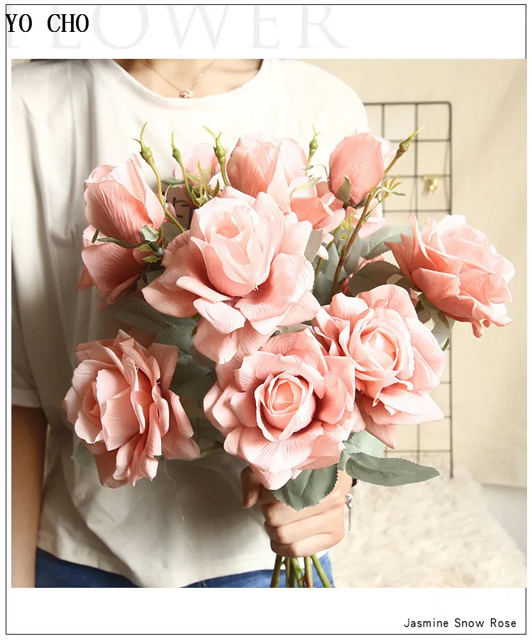 YO CHO оптовая продажа 3 головы шелка Жасмин Снежная роза искусственная Роза ветка Декор Цветок свадебное украшение дома поддельный цветок