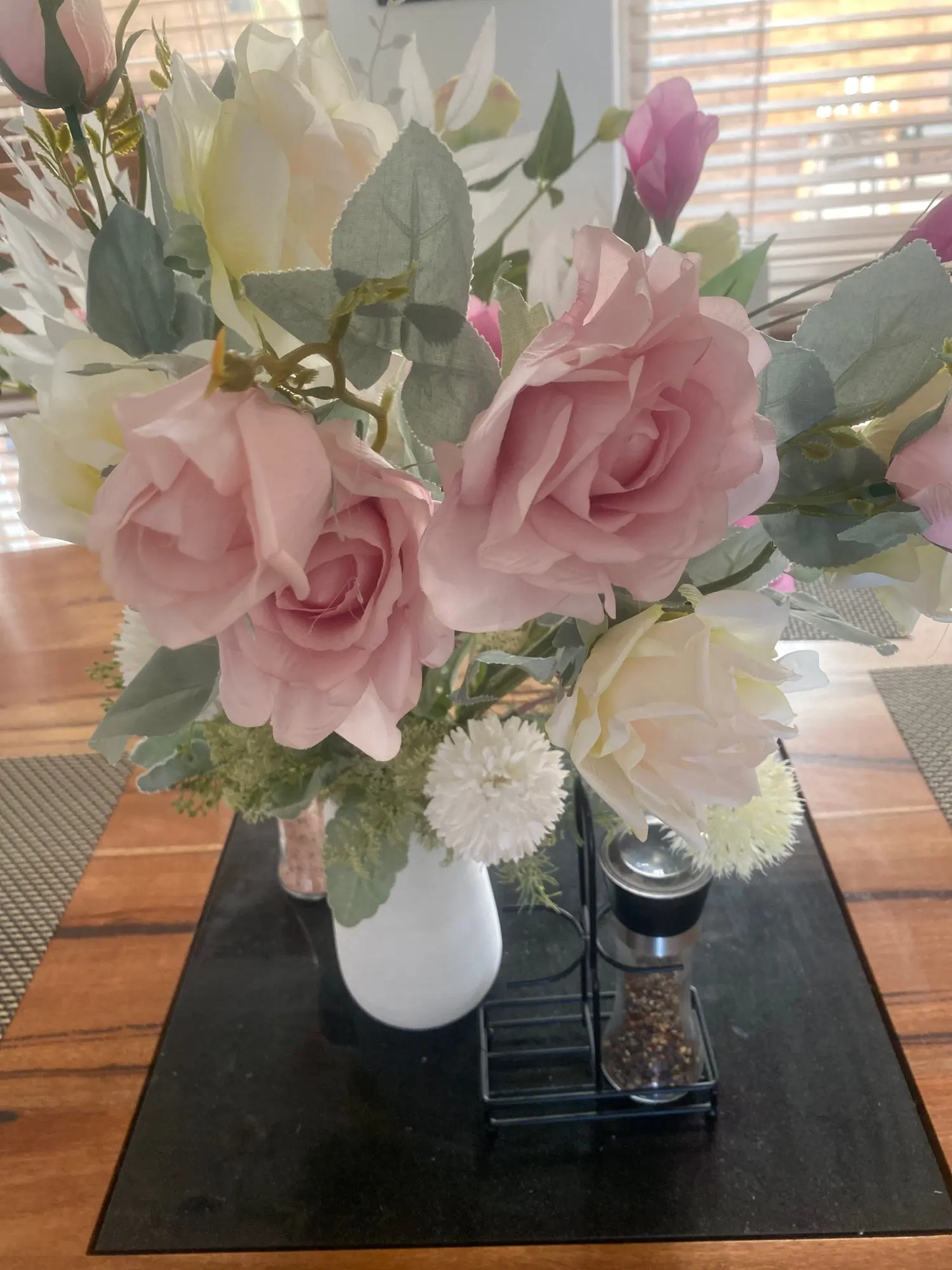 Два букета из трех роз и наполнение вазы. Очень хорошо Картинка такая же. Они прибыли в ближайшее время и хорошо защищены. Спасибо, мистер продавец. Я рекомендую этот магазин.