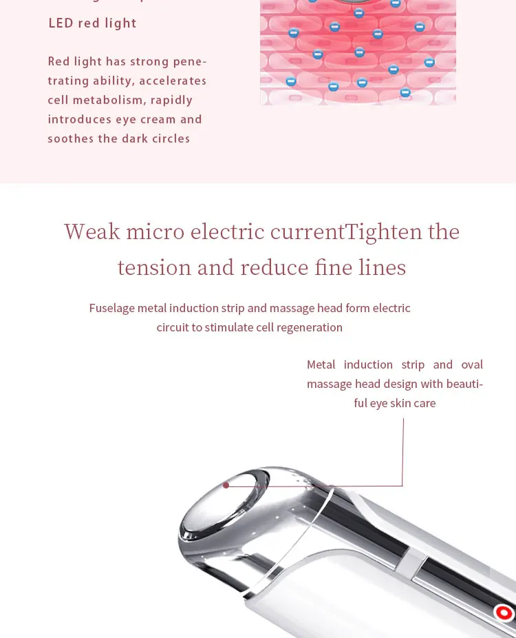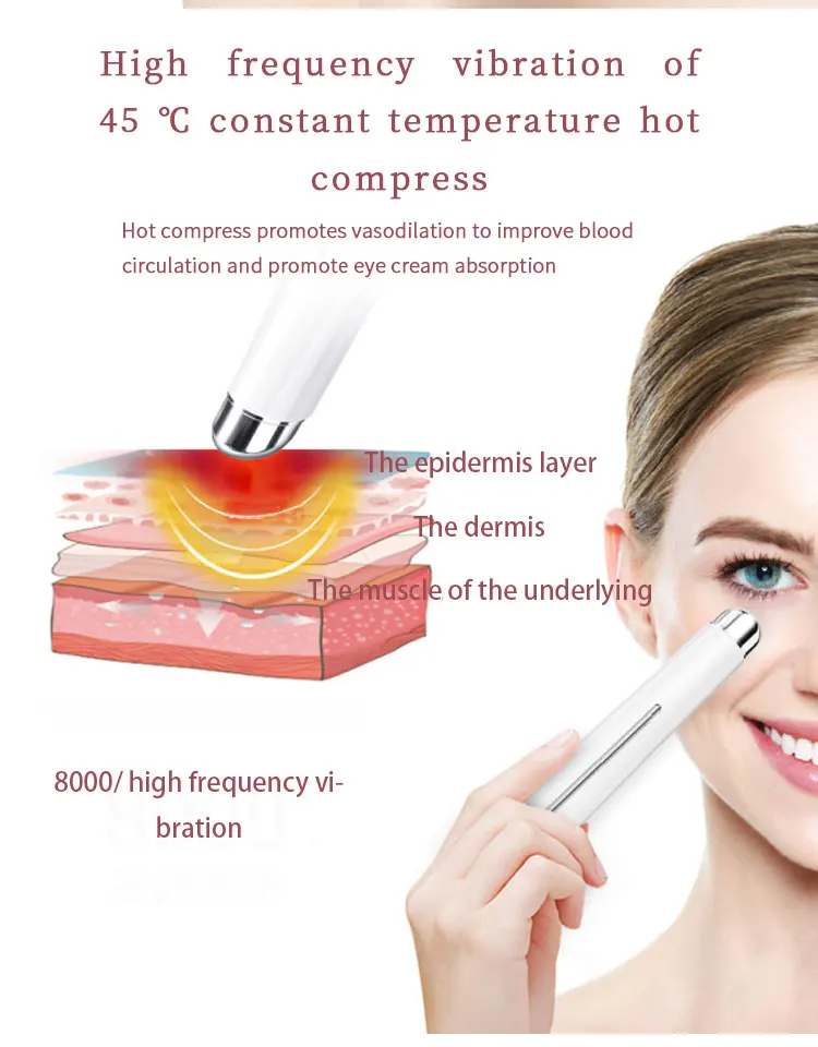 Информация о продукте Устройство для ухода за глазами и красоты Koli имеет ток Магнитное поле и принцип импорта ионов Импорт питания в продукт по уходу за кожей в Subcutaneouse. По сравнению с Руководство | Применения, он может эффективно проникать, чтобы сделать Увлажняющая и пухлая кожа вокруг глаз. Стойкое ежедневное использование повышает эластичность кожи Эффективно, снимает черные глаза и чехол для век, Ломкость, птоз, морщины в области вокруг глаз, пятна И обесцвечивание, а также другие проблемы с глазами. Компактная форма, легко носить с собой. Используйте USB для зарядки, безопасный и экологически безопасный Звук. Специальный дизайн для глаз может цепляться Каждый уголок из кожи. С четырьмя типами Функции массажа С звуковой волны Вибрация, обратное движение человеческого тела, colorama Уход, подтяжка и подтяжка кожи вокруг глаз для повторного создания Контур, кривая и глаза для восстановления старения Следов.