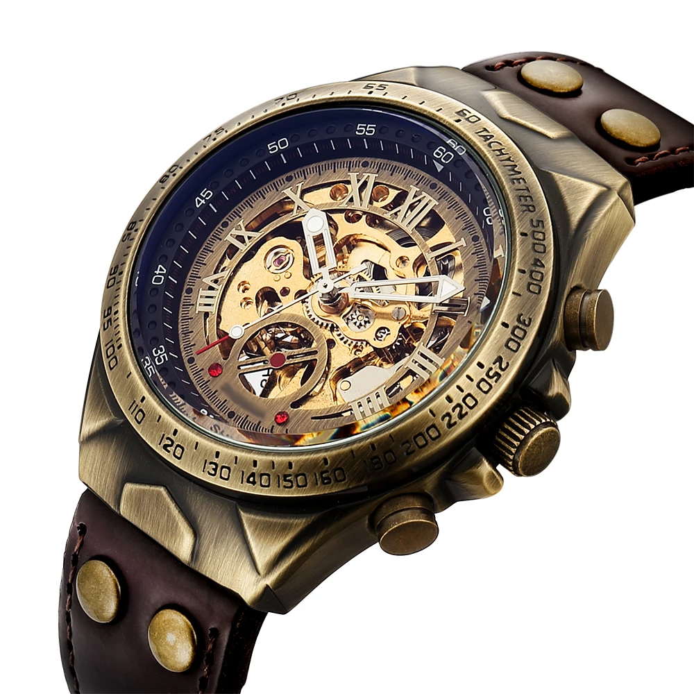 Часы мужские, винтажные, механические, автоматические, в стиле стимпанк, с автоподзаводом, ретро, с кожаным ремешком