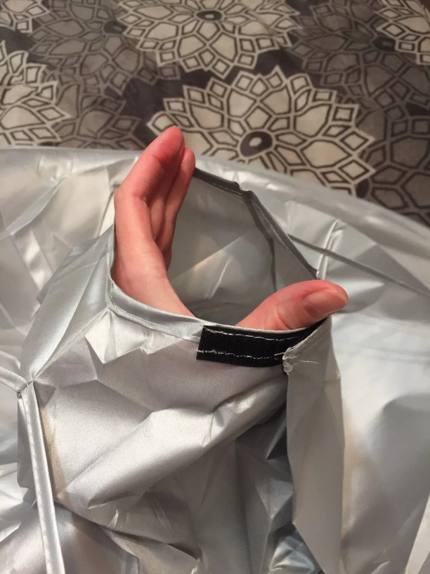 очень удобное приспособление,ткань-плащевка,шея на липучке