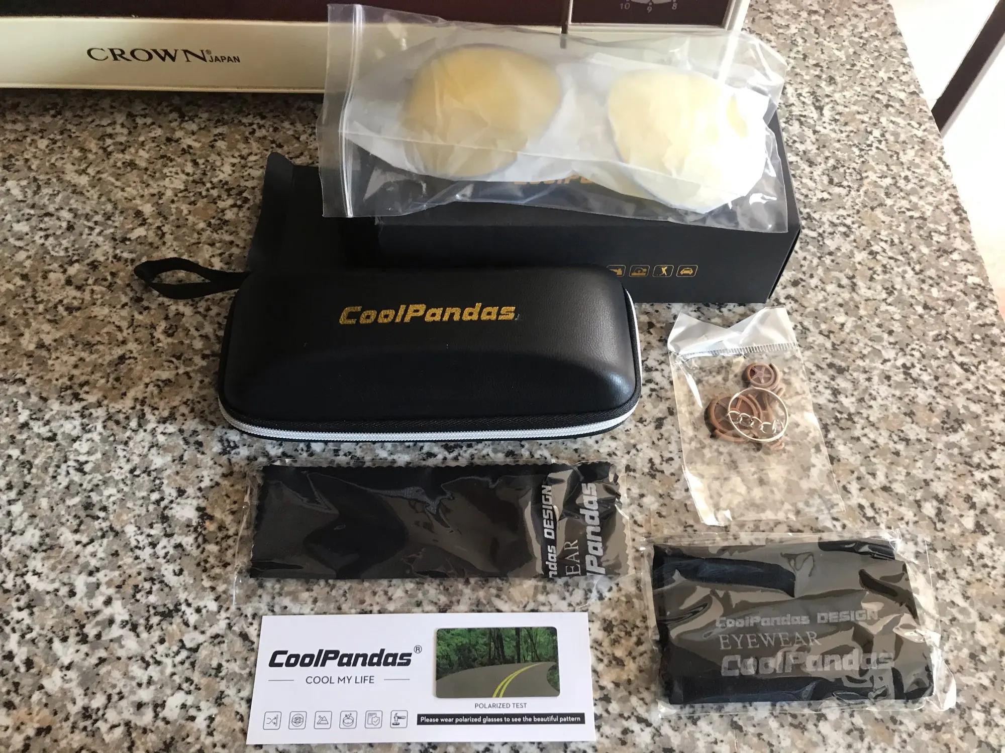 Хорошее качество. Фирменная коробка, футляр, мягкие тряпочки, картинка для проверка поляризации. Рекомендую.