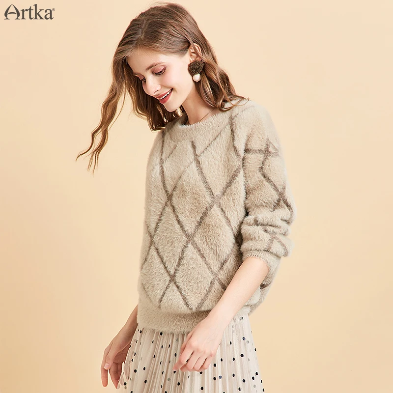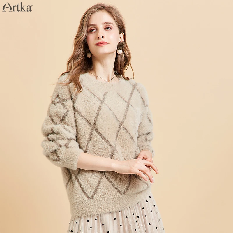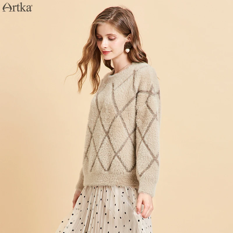 Женский вязаный свитер ARTKA YB11090Q, утепленный шерстяной пуловер с блестками и круглым вырезом, зима 2019