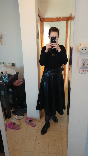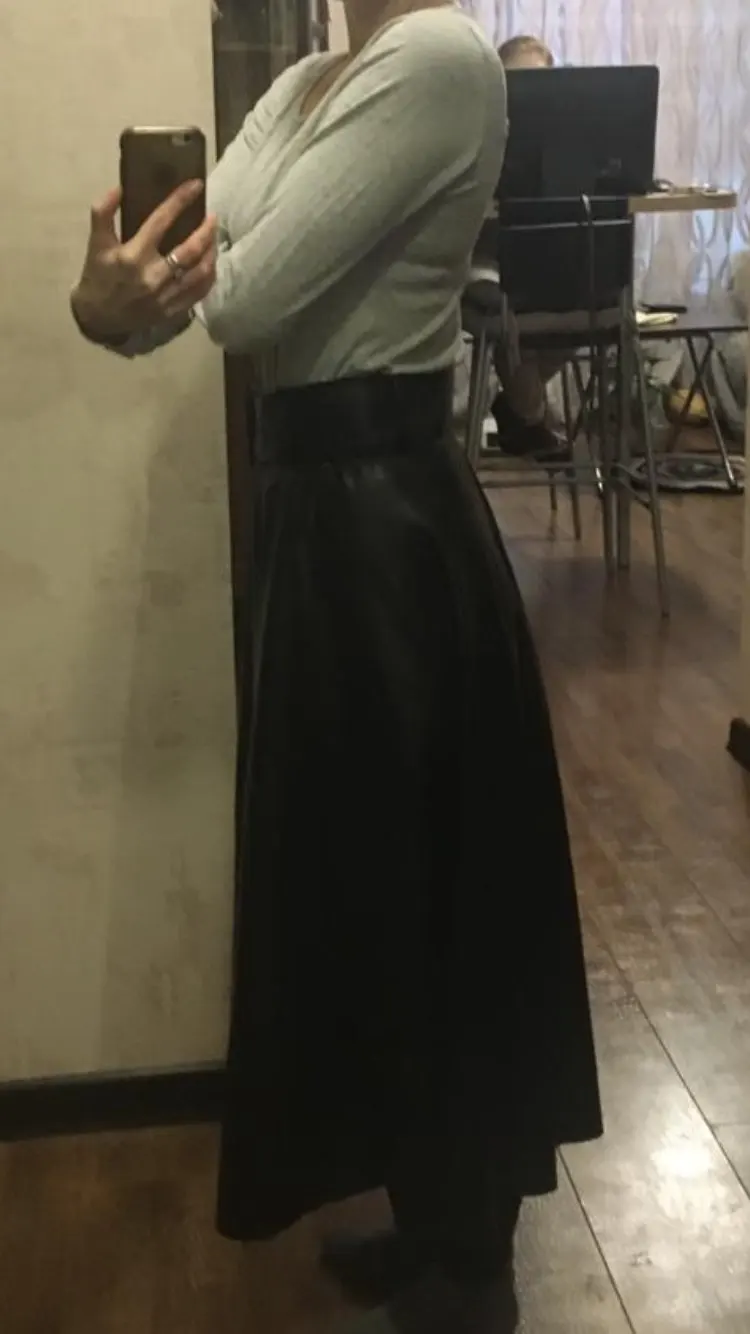 Доставка менее двух недель. Качество материала хорошее, смотрится как кожа. Мягкая, лёгкая, швы прошиты хорошо. Огорчило, что шлицы для пояса пришлось перешивать, так как были пришиты впереди ровно, а сзади одна по середине, а другая сбоку. По большому счету юбка хорошая.На 44 размер купила L, но можно было бы и M. Длина юбки до середины икр, при росте 164.