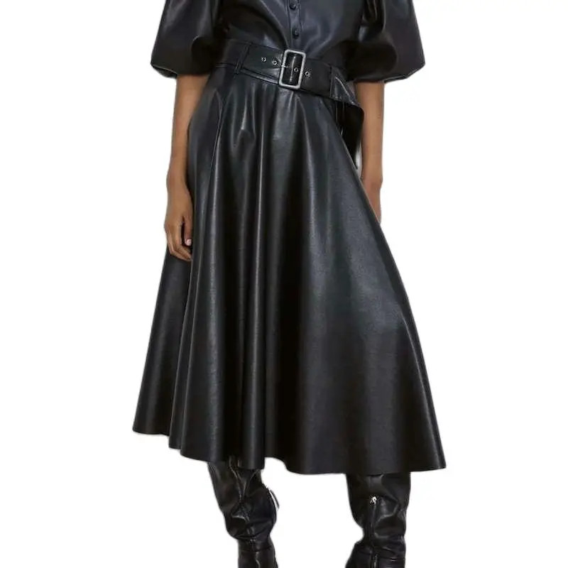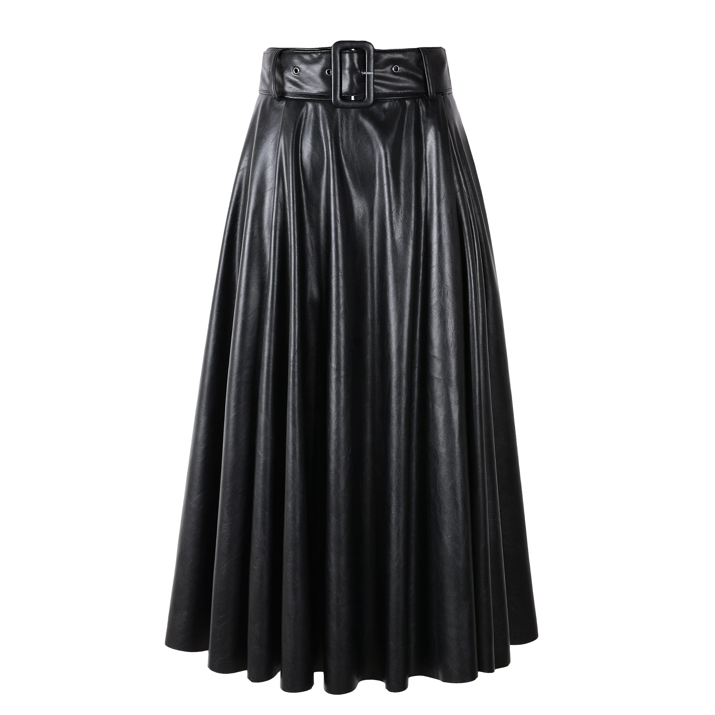 Юбка-макси Женская из искусственной кожи, черная, винно-красная, трапециевидная, до середины икры, с высокой талией, на осеньзиму, 2021