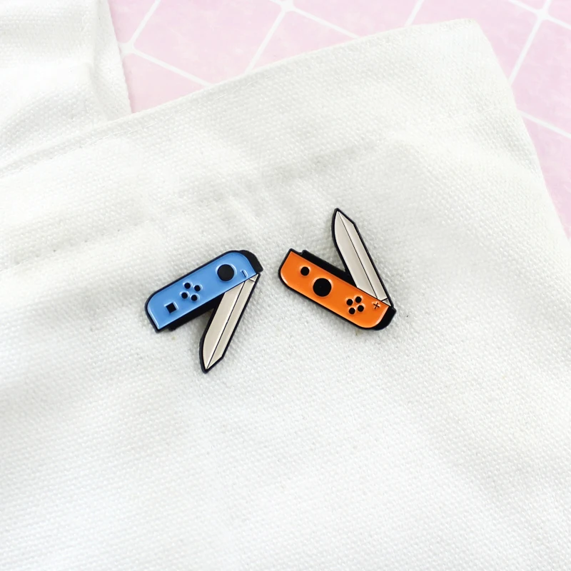 Эмалированные булавки, оранжевый синий нож, геймпад, игровая ручка,...