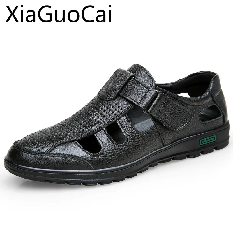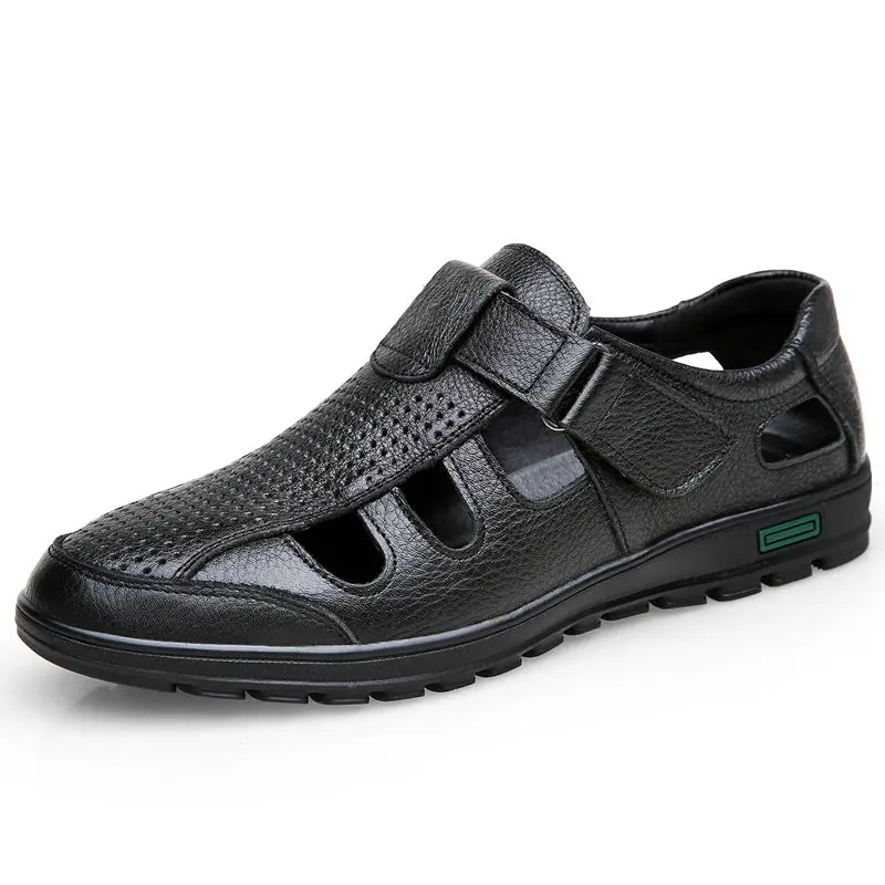 Сандалии мужские из мягкой натуральной кожи, босоножки на плоской подошве, обувь для отдыха и работы, лето, 2019