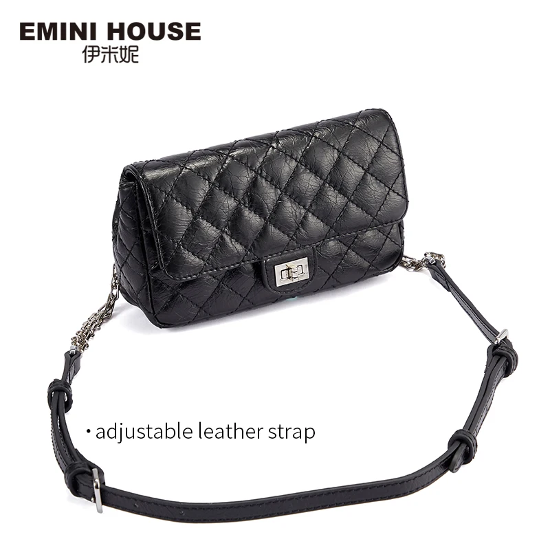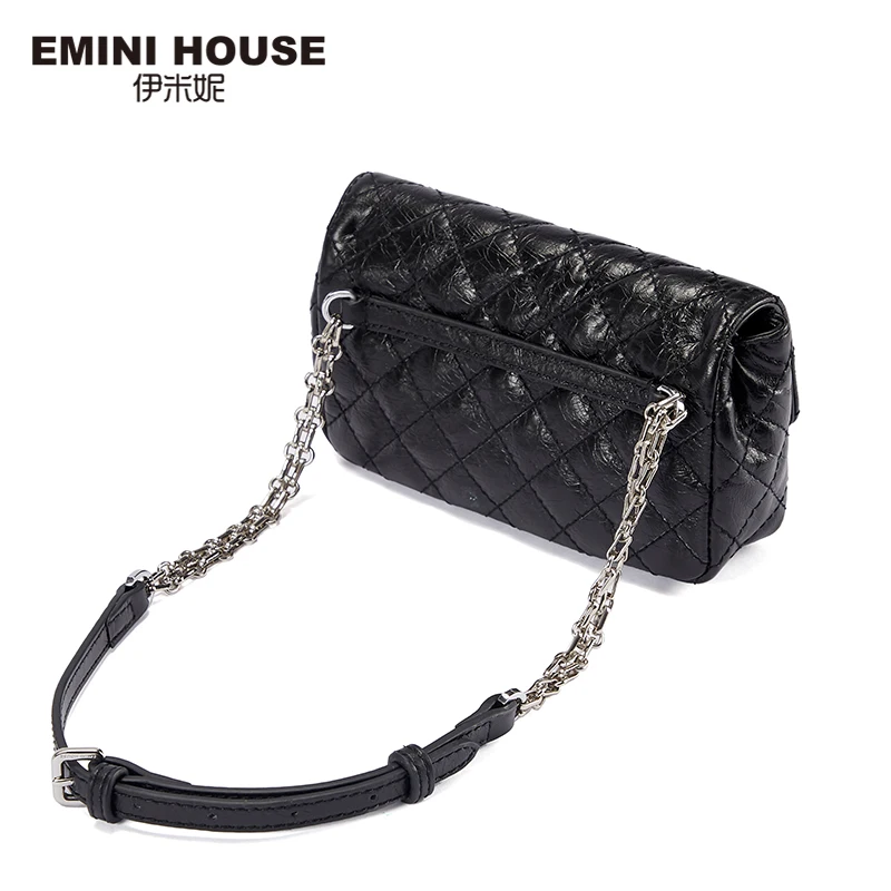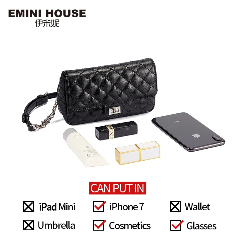 Женская сумка через плечо EMINI HOUSE, сумка из натуральной кожи с цепочкой, украшенная стразами, в клетку, с воском