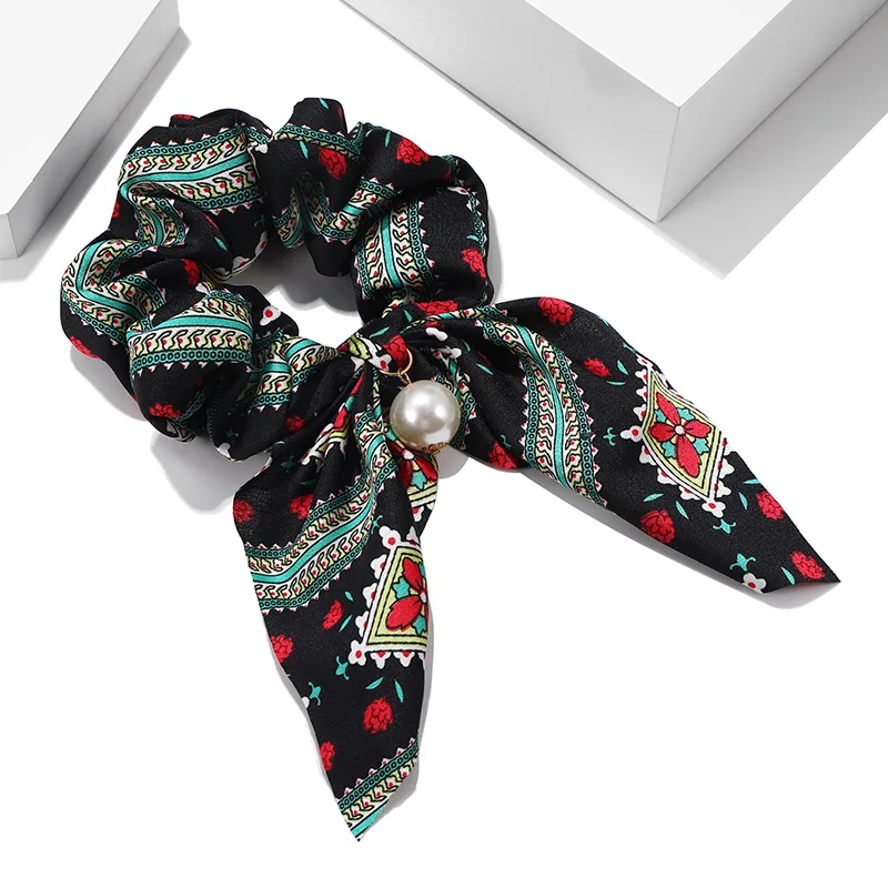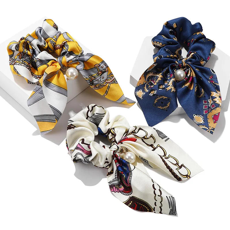 Аксессуары для волос из шелка и шифона для женщин, аксессуары для волос с жемчужным хвостиком, резинки для волос 2019
