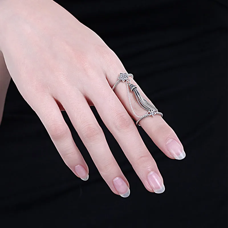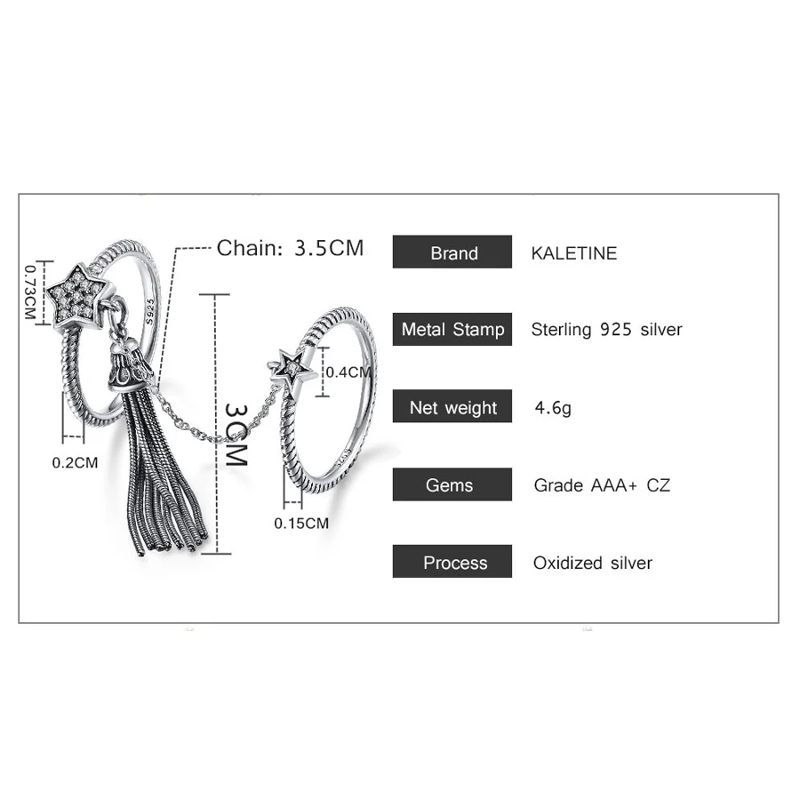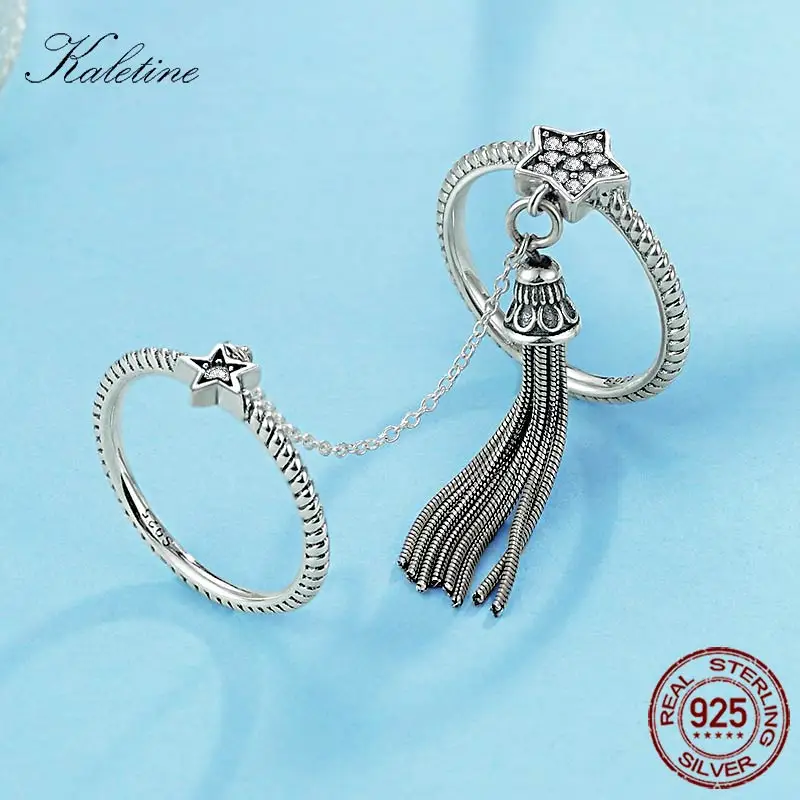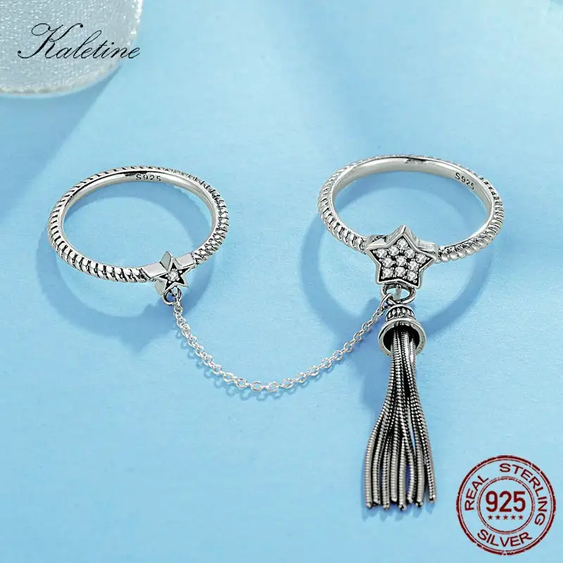 Женское Винтажное кольцо с кисточкой KALETINE, из серебра 925 пробы, с двумя кольцо с дизайном звёзды, с цепочкой, в богемном стиле