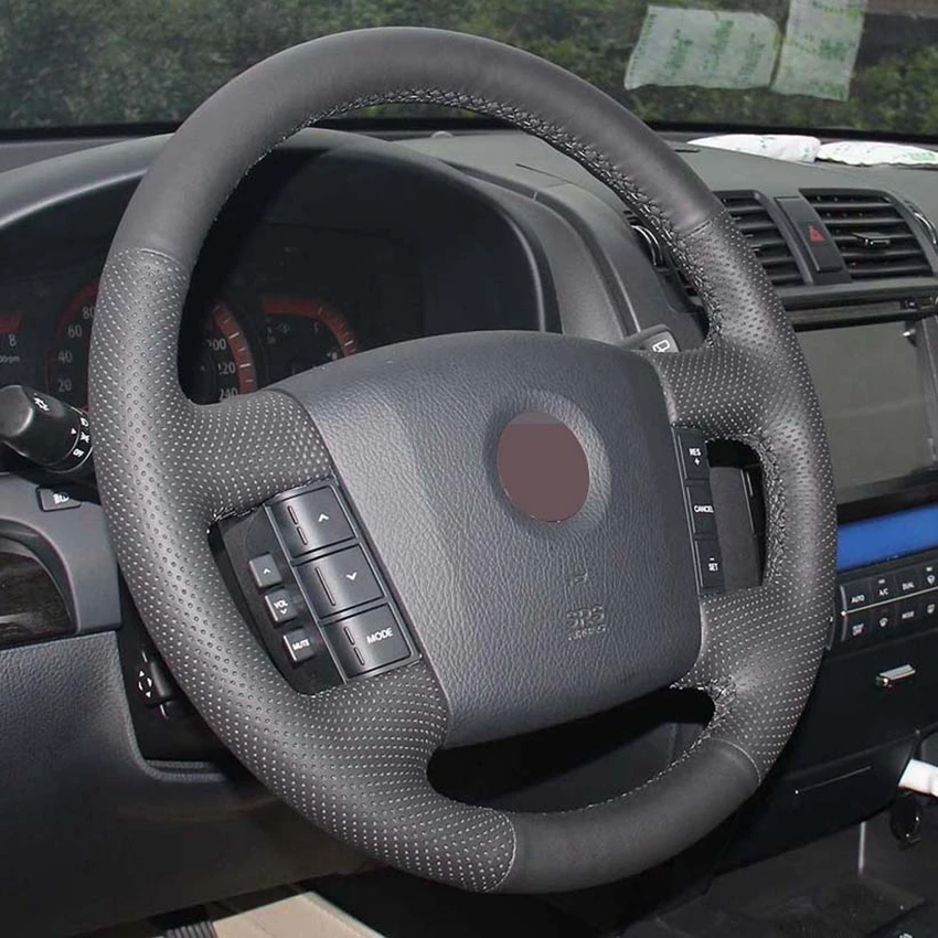 Сшитый вручную черный чехол рулевого колеса автомобиля из искусственной кожи PU для KIA Mohave Borrego 2008