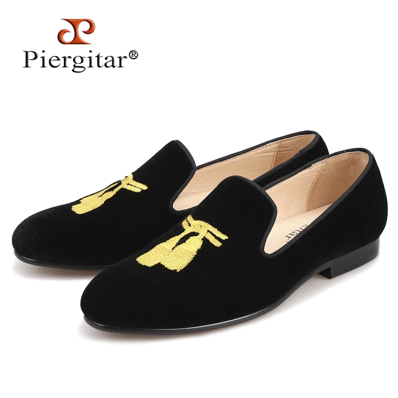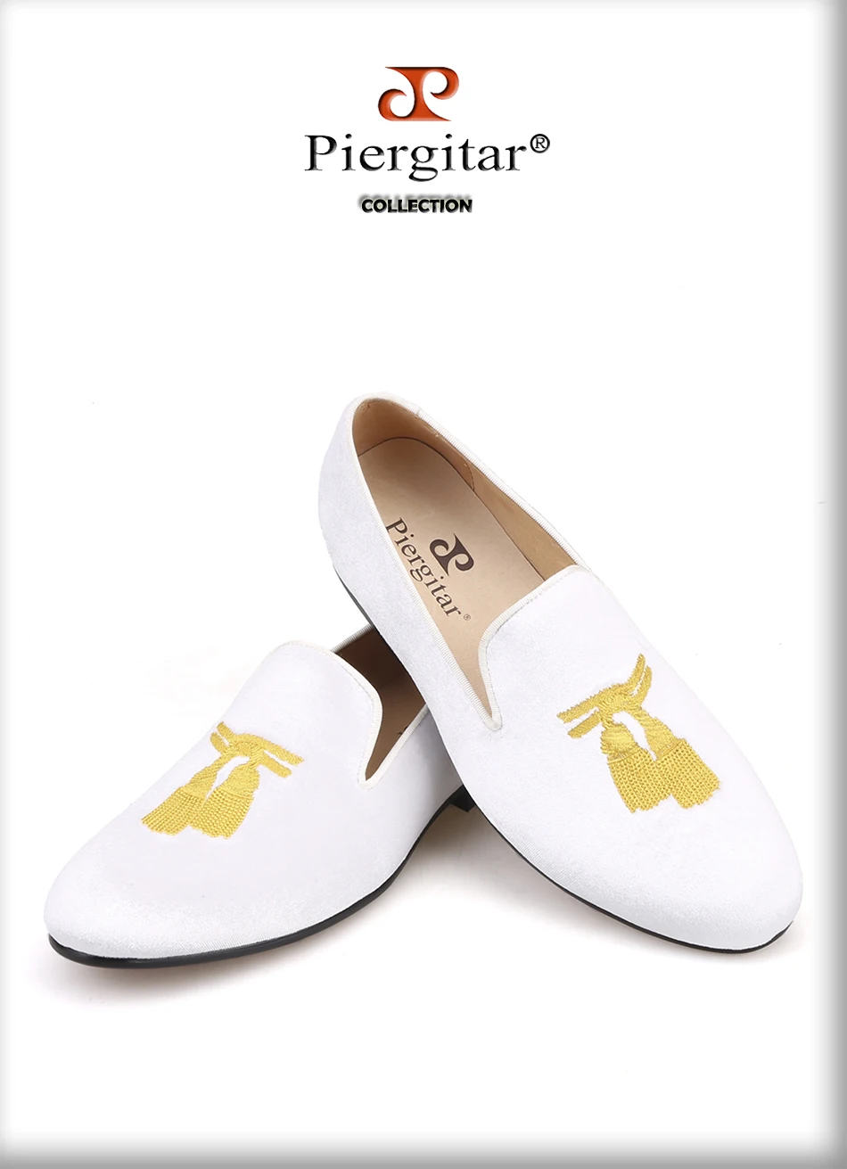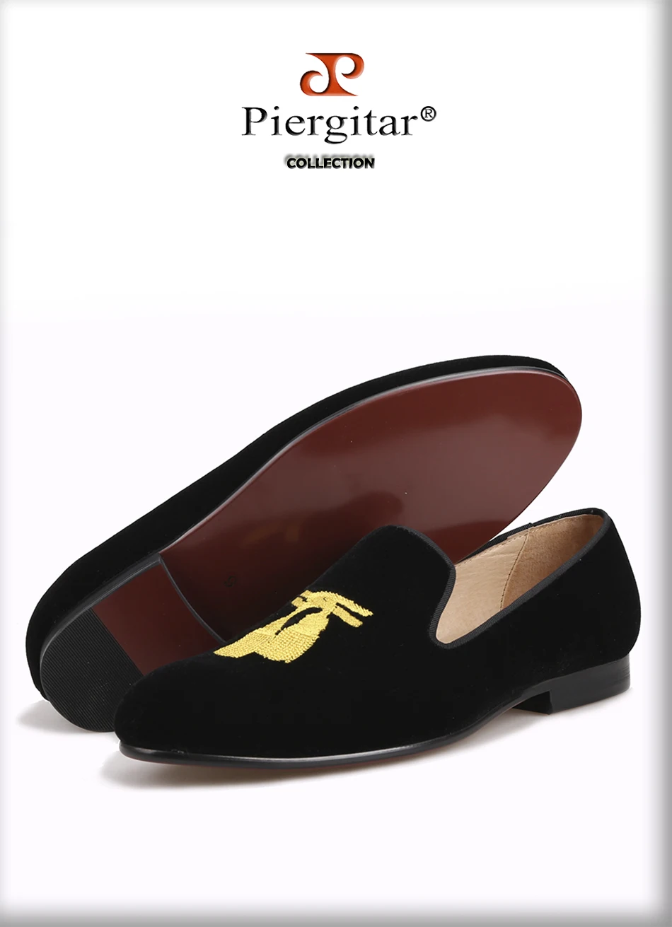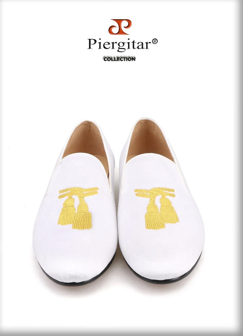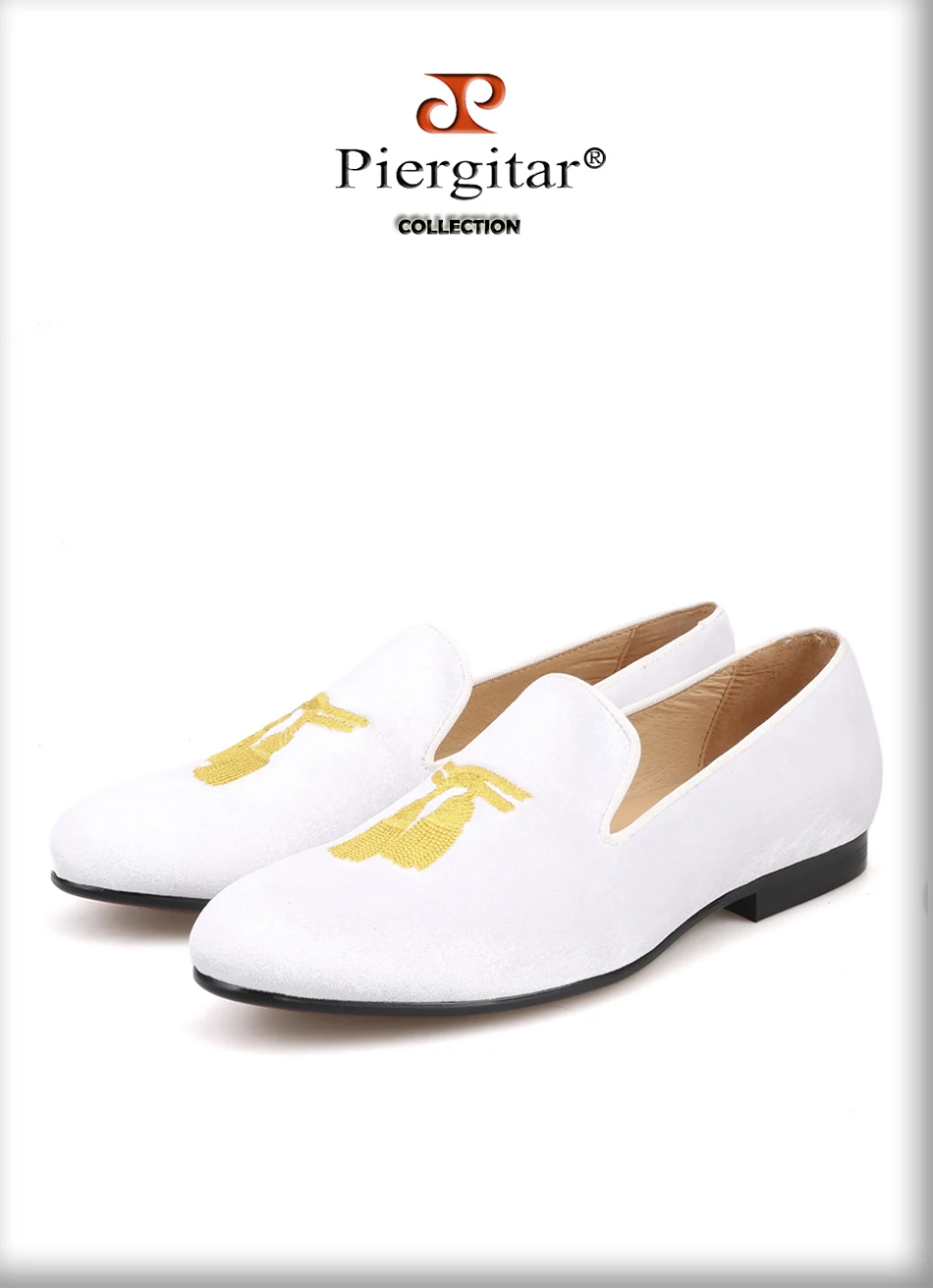 Piergitar2019 мужские лоферы ручной работы с вышивкой кисточкой; Кожаная стелька; Модные мужские бархатные туфли без застежки для вечеринки и свадьбы