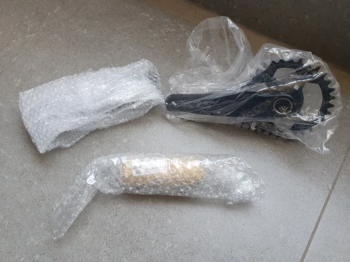Приехало быстро. Выглядит прилично. Смазки достаточно. Упаковка отвратительная - правый шатун с пауком запихан боком в маленькую коробочку на излом, коробка изнутри продрана звездой, которая лишь чудом не покоцалась. При желании можно было и паук сложить, приложив силу молодецкую к боковой стенке коробки. Продавцу писал про нормальную упаковку, но, судя по отзывам на другую продукцию, это норма.